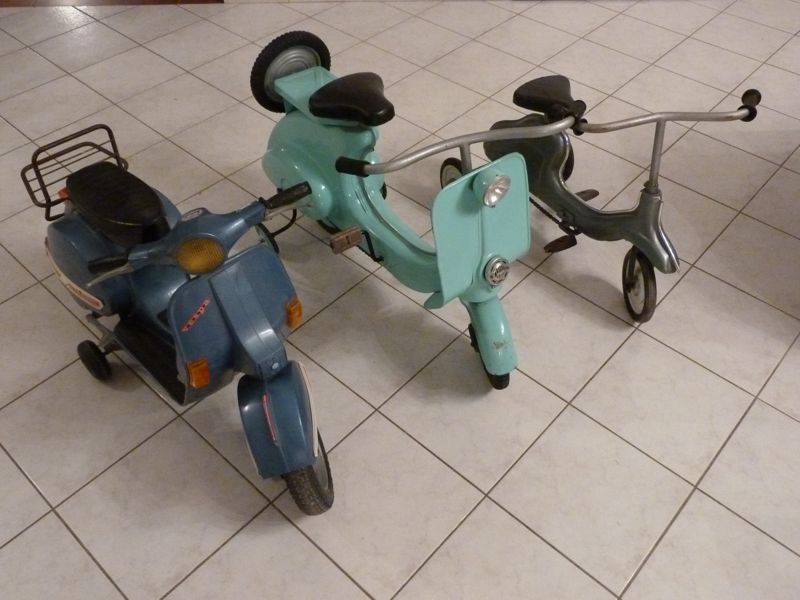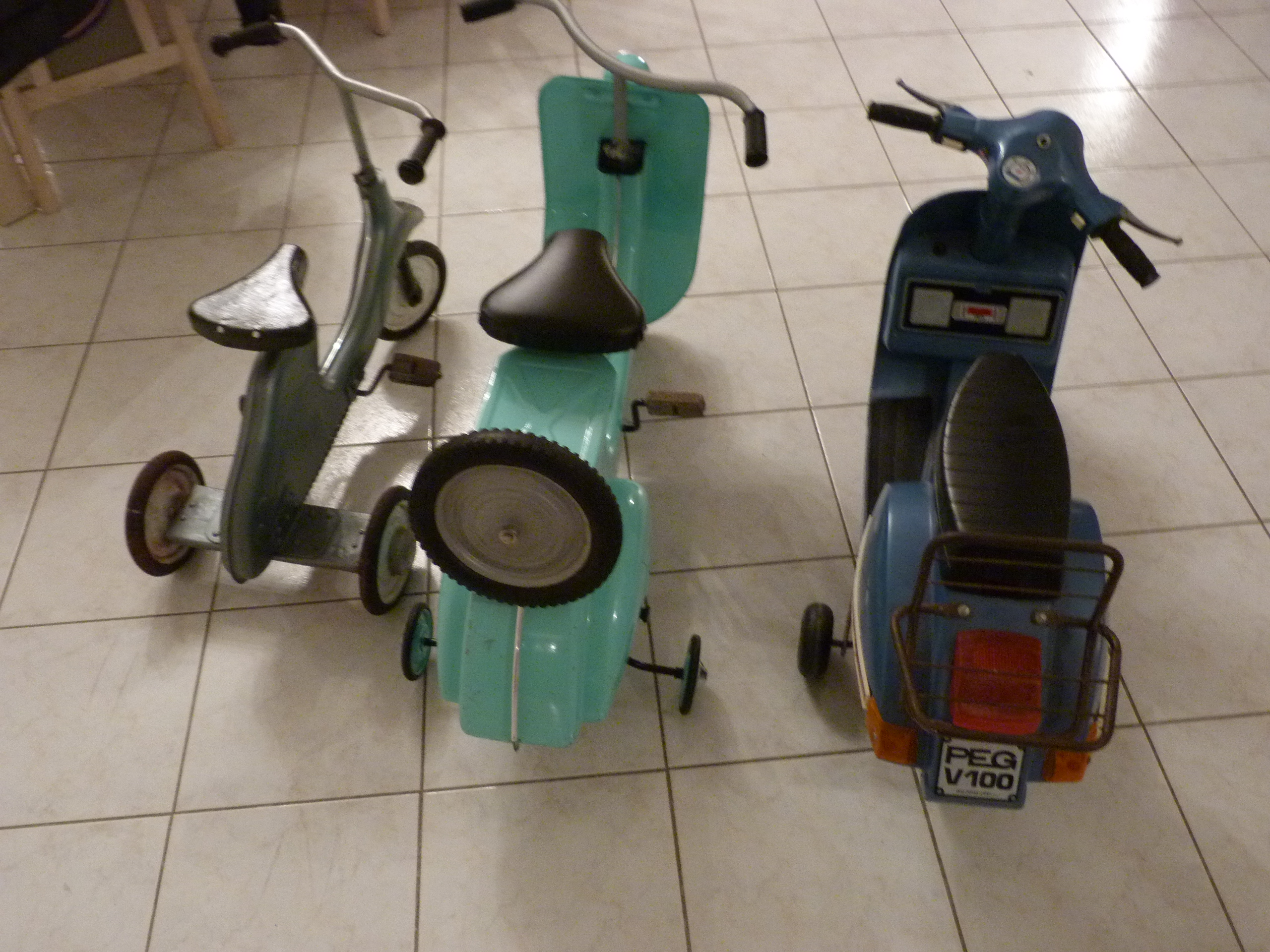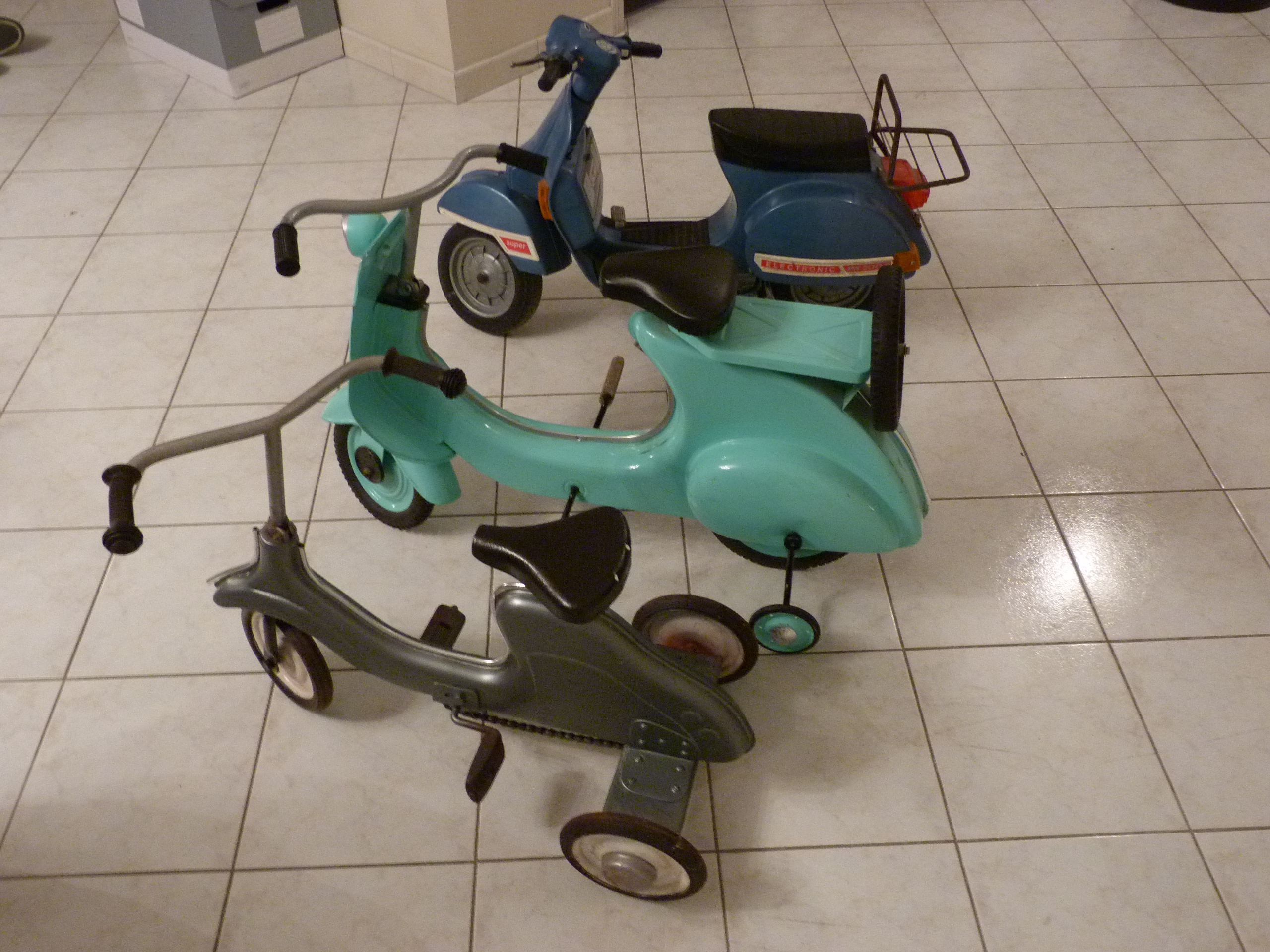 Je possède des scooters pour mes filles, un vespa et un lambretta en tole et un px électrique en plastique. D'autres parmi vous en ont aussi ?