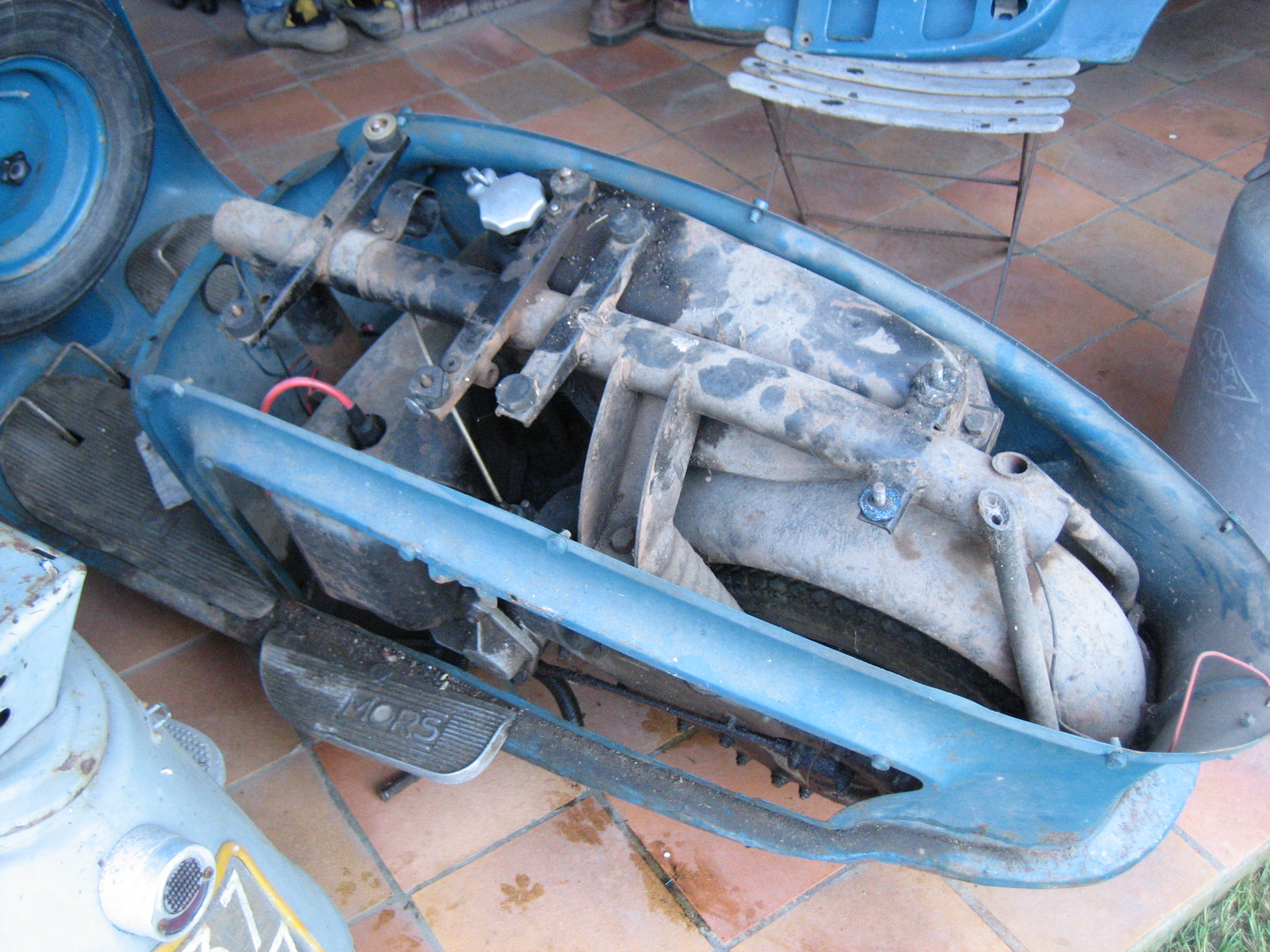 Un premier dégraissage et phosphatant, une fuite de réservoir (toute petite) sur le garde boue