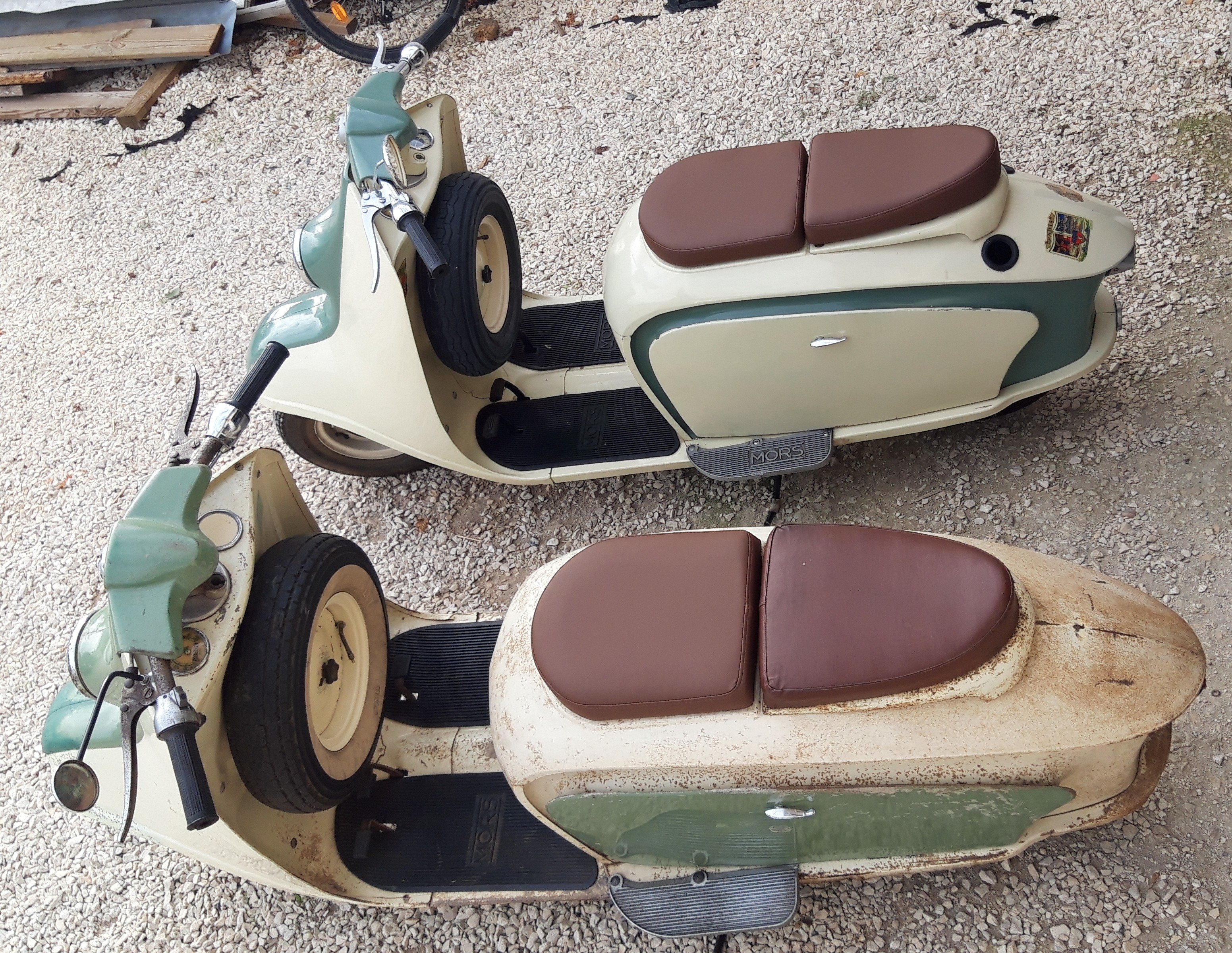 Salut J'entame le demontage du mien Il est de 1949, c'est certainement le 64ème de la production il porte le numéro moteur 1025 (j'ai aussi un moteur d'avance porte le numéro 661 ! Parmi les les plus anciens recensés) Je recherche donc un maximum d'informations : ref couleur originale pour commencer...