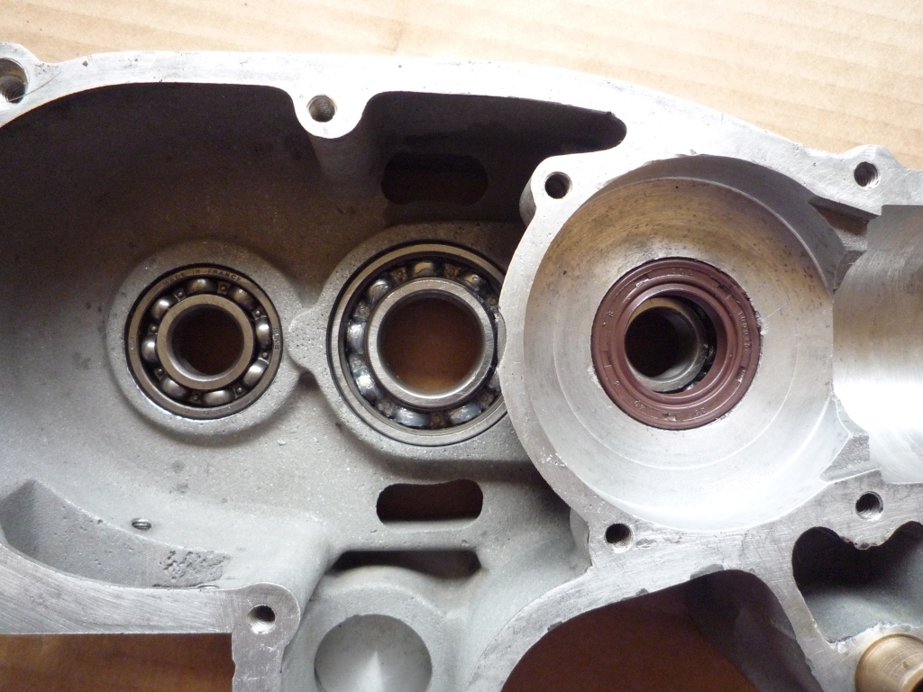 Le moteur microbillé a été bien nettoyé et surtout bien soufflé pour éliminer toute trace de billes de verre. Remontage des roulements et des spis en viton pour l'embiellage, pour tenir à l'assaut de notre chère essence moderne...Le we prochain, reste à assembler les carters, et caler l'allumage. Ensuite le Cabri pourra se mettre sur ses 2 roues... On va être dans les temps