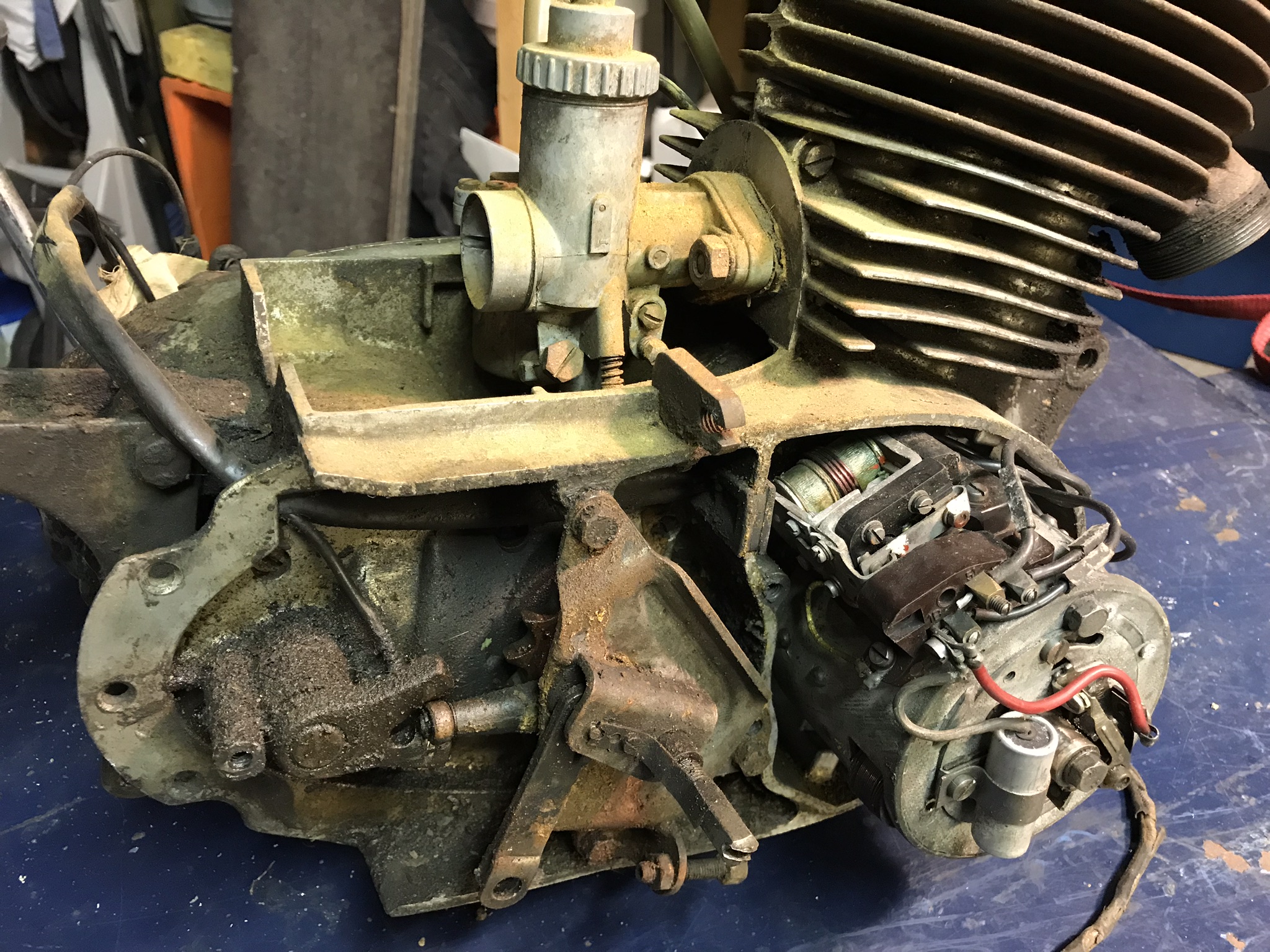 Pour le moteur, les carters sont au microbillage, le vilo chez le motoriste pour le changement de la bielle et du maneton, avec le réalésage cylindre. Il me manque encore quelques pièces non dispo actuellement, mais j’ai bon espoir. L’objectif 2020 est toujours à la clé !