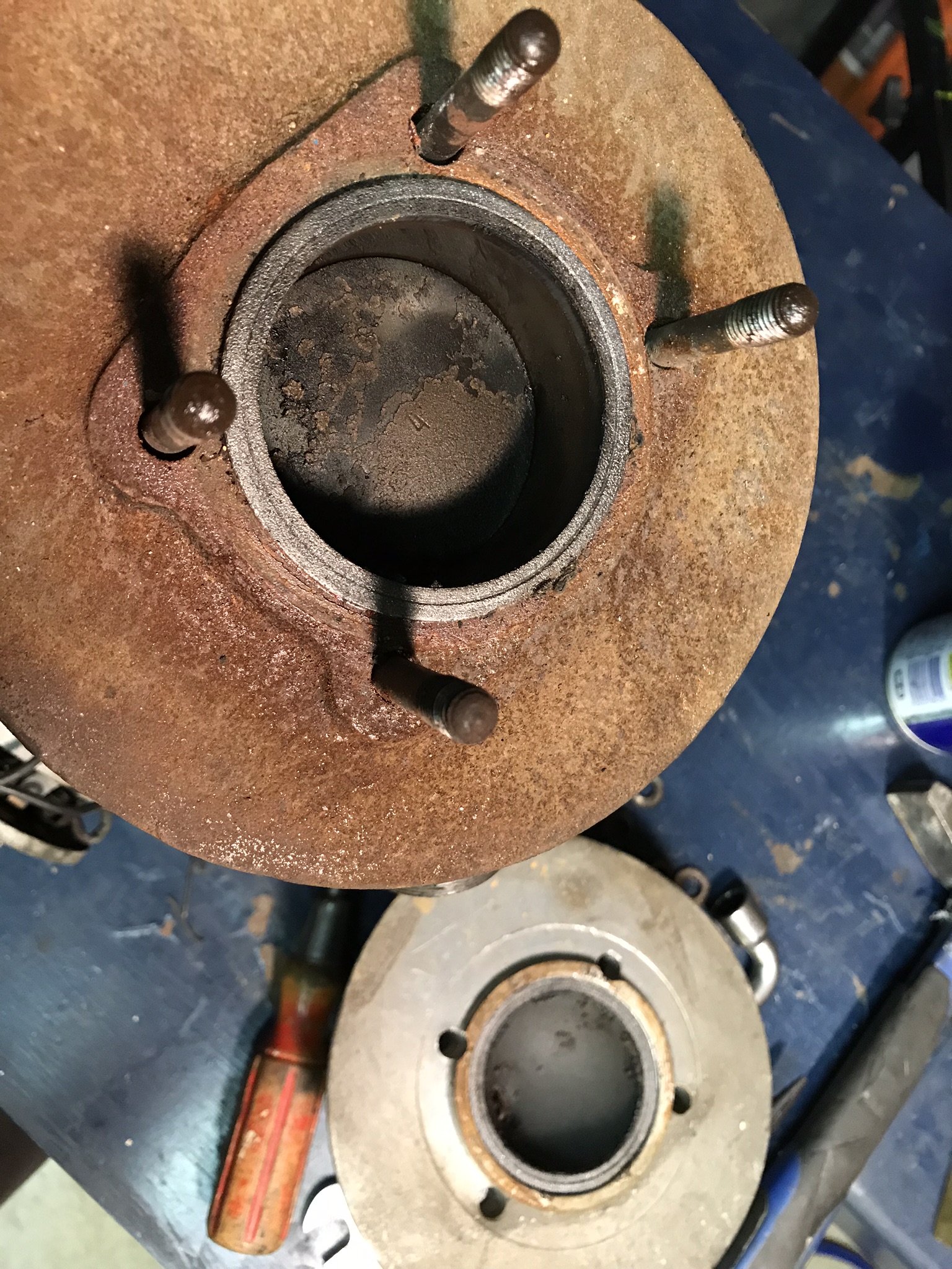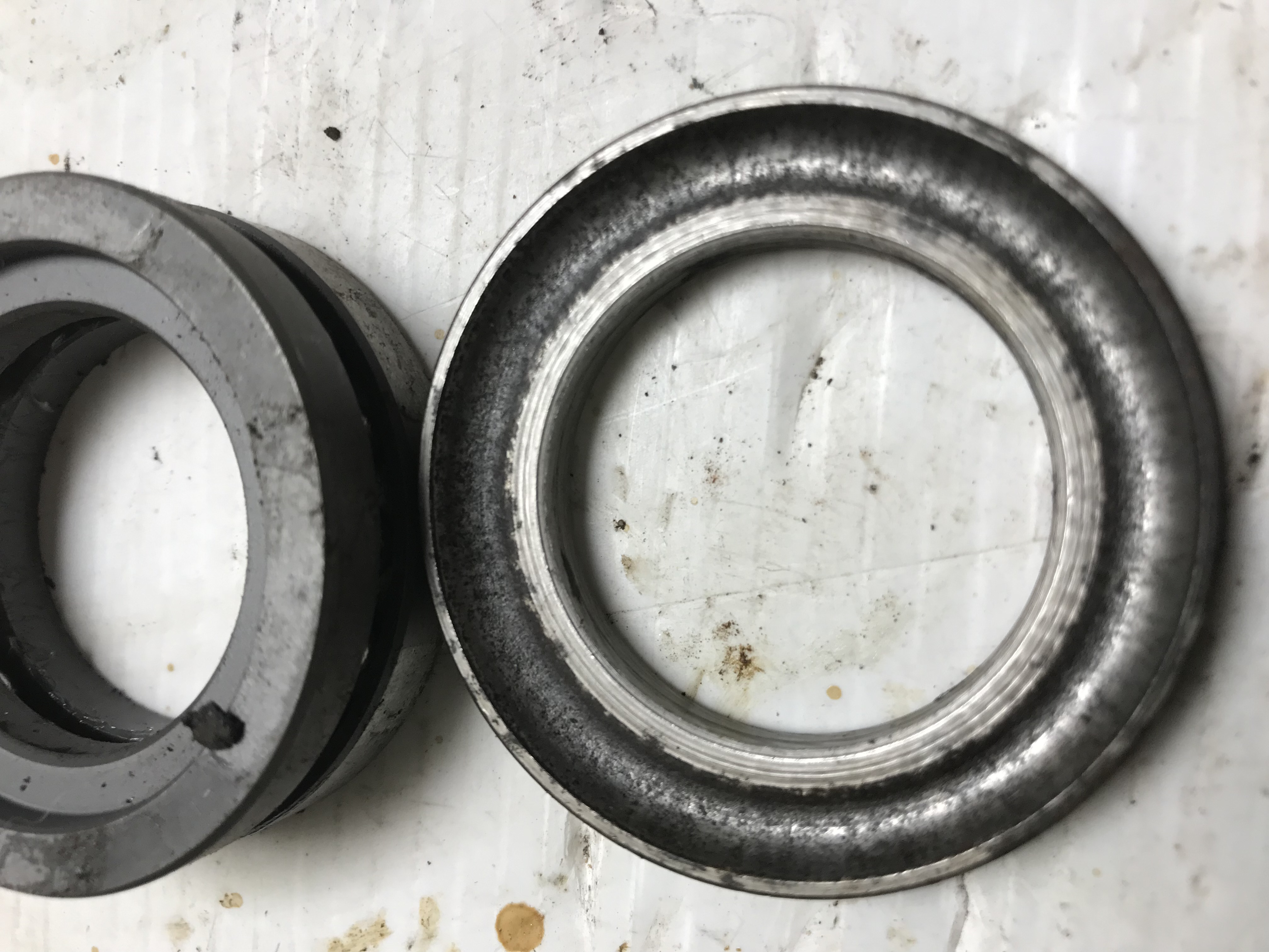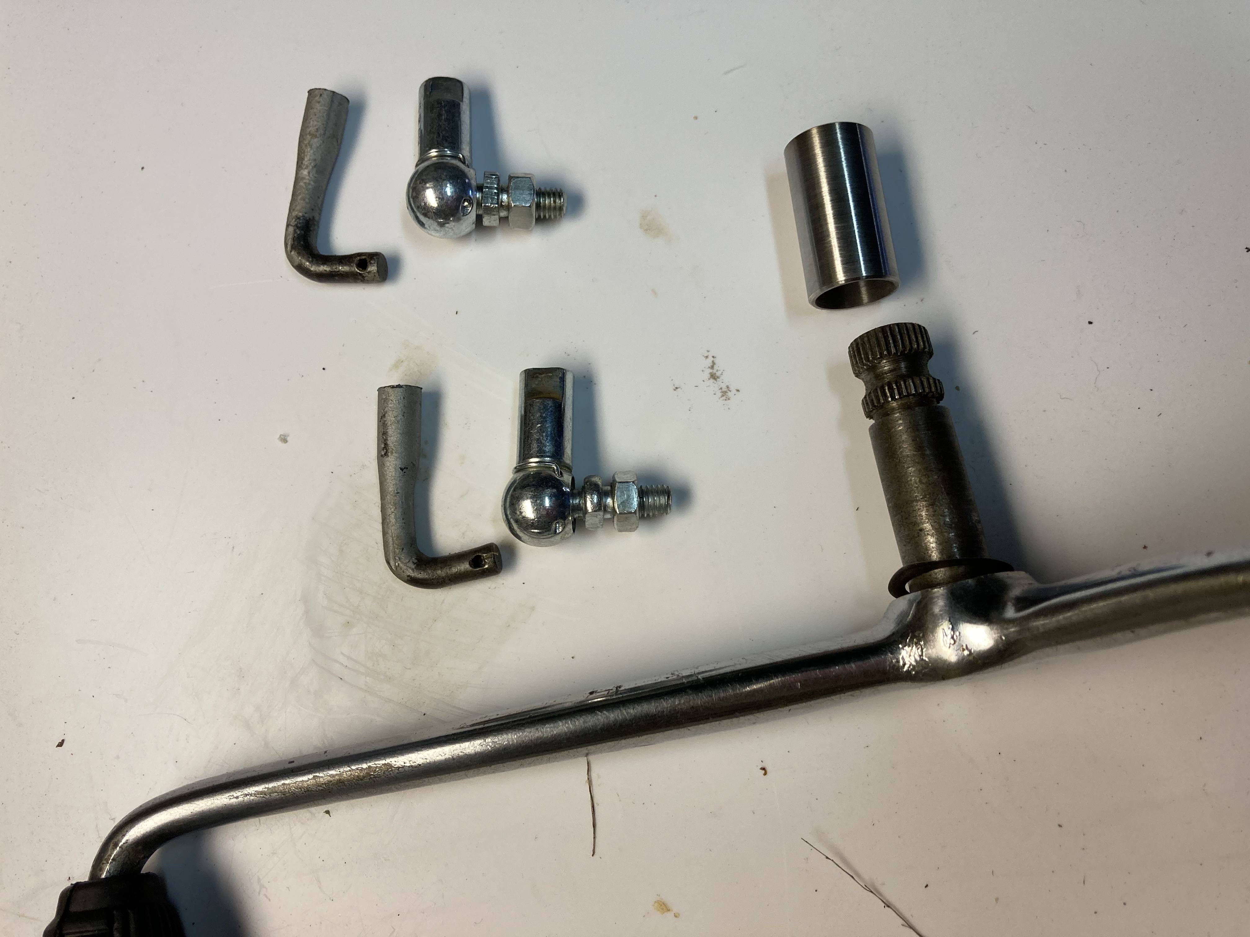 Bague récupérée, rotules din vissées sur une vis btr soudée sur la tige, normalement le jeu va être minime. Je colle la bague et à suivre….