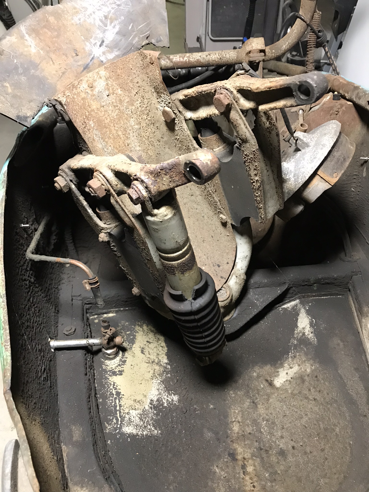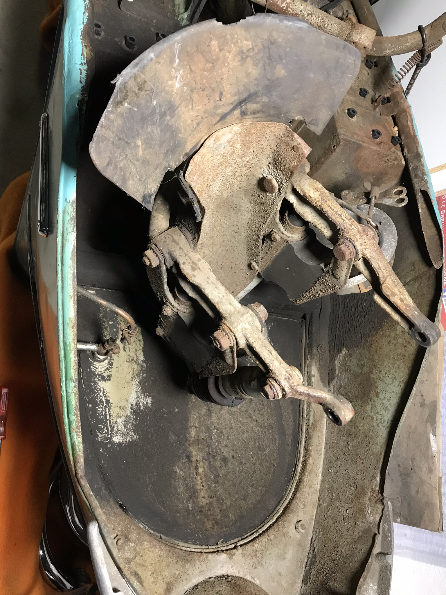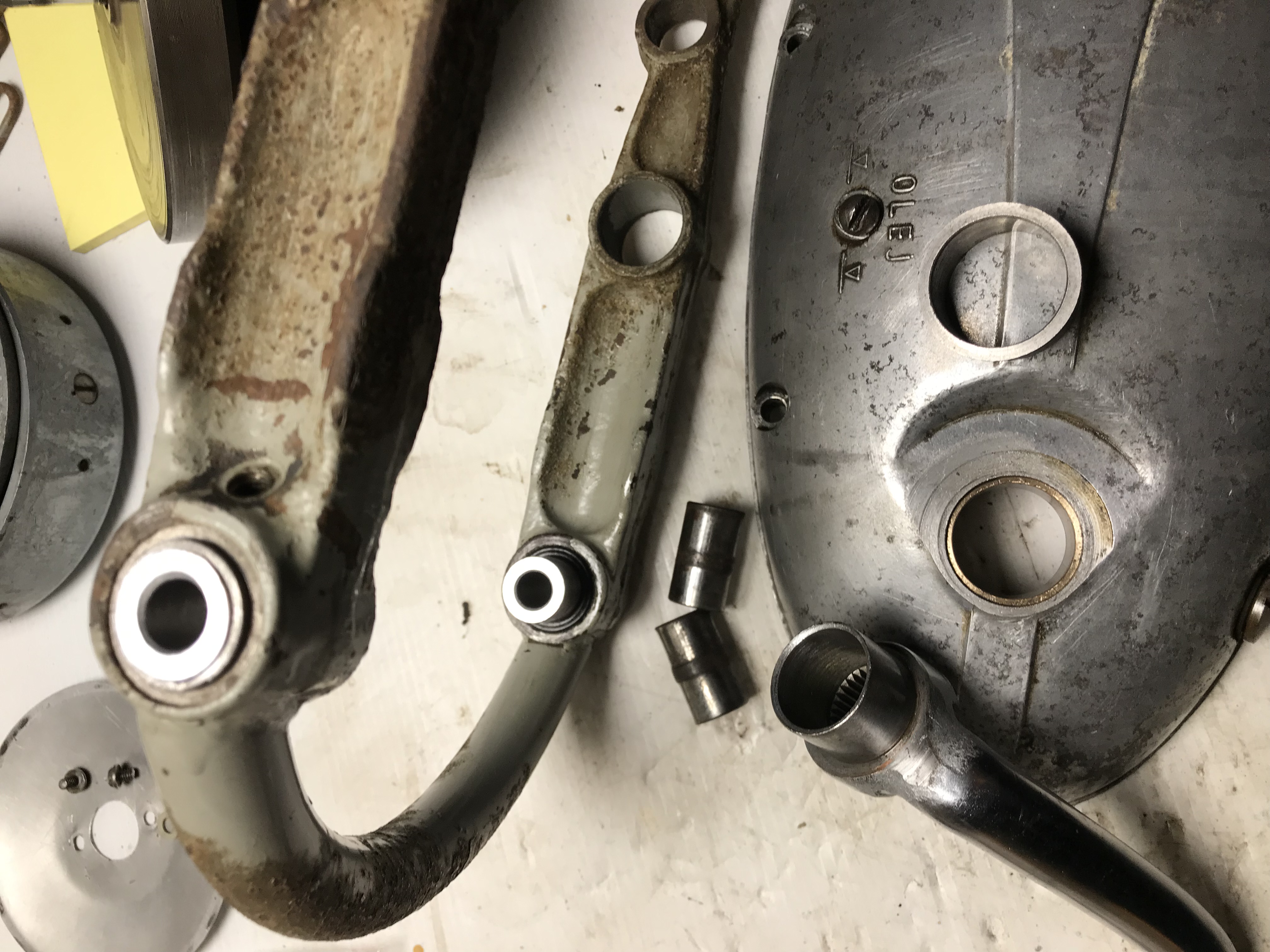 Suite du nettoyage et démontage : le gras de Tchéquie est en grande partie nettoyé, pas une mince affaire! La fourche démontée, les cuvettes sont bien oxydées, les billes étaient sèches.... Un peu de soudures , peinture de protection de l’intérieur et je vais pouvoir commencer certains remontages