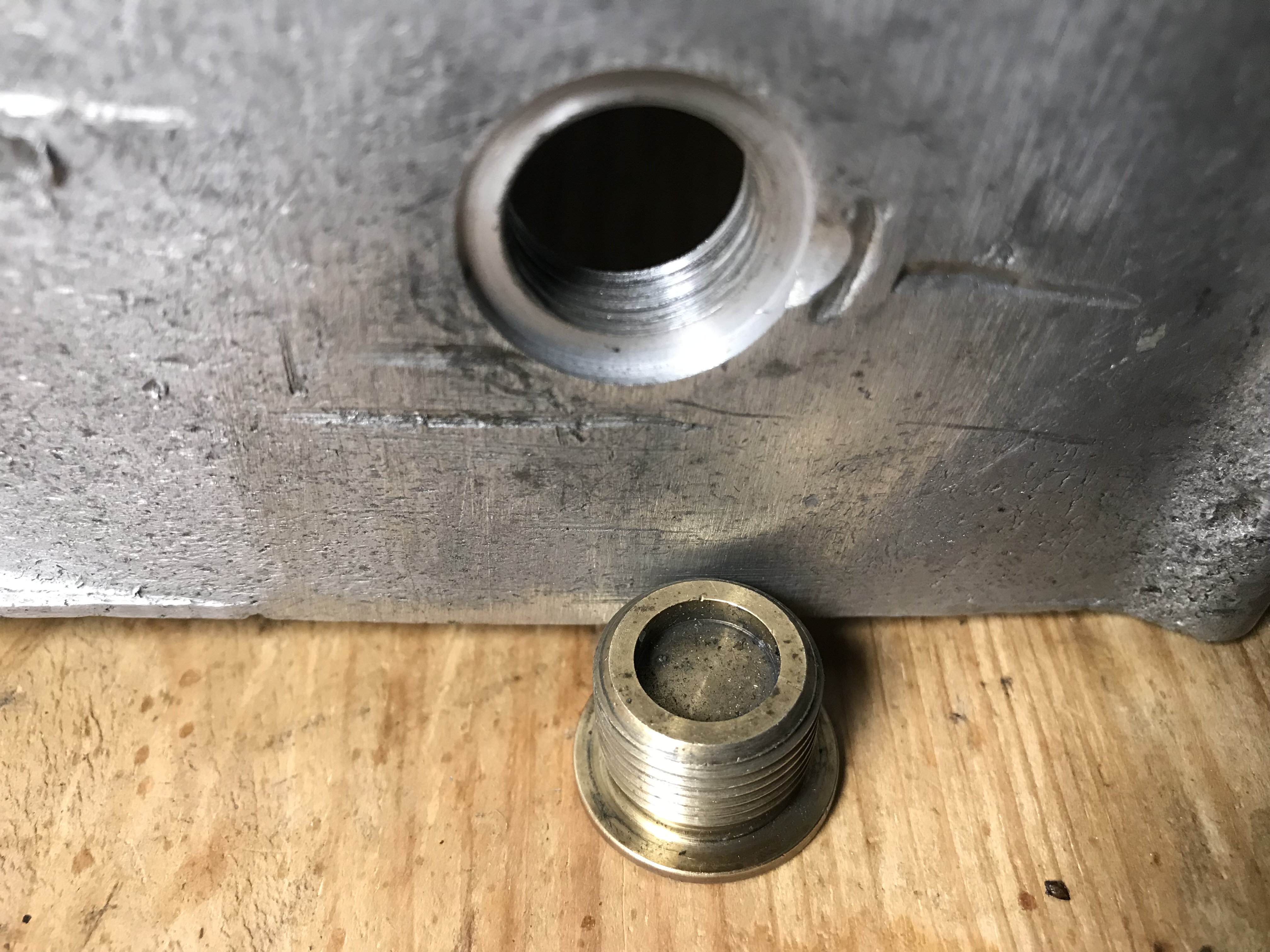 Le passage est acrobatique mais concluant, le trou a été agrandi à 15,5 seul forêt suffisamment long dispo, et j’ai fini à la main avec un alésoir de 16. Maintenant le tourneur doit me faire une bague de 14-16, puis montage des biellettes et là je pourrai donner un verdict…. Mais ça se présente bien