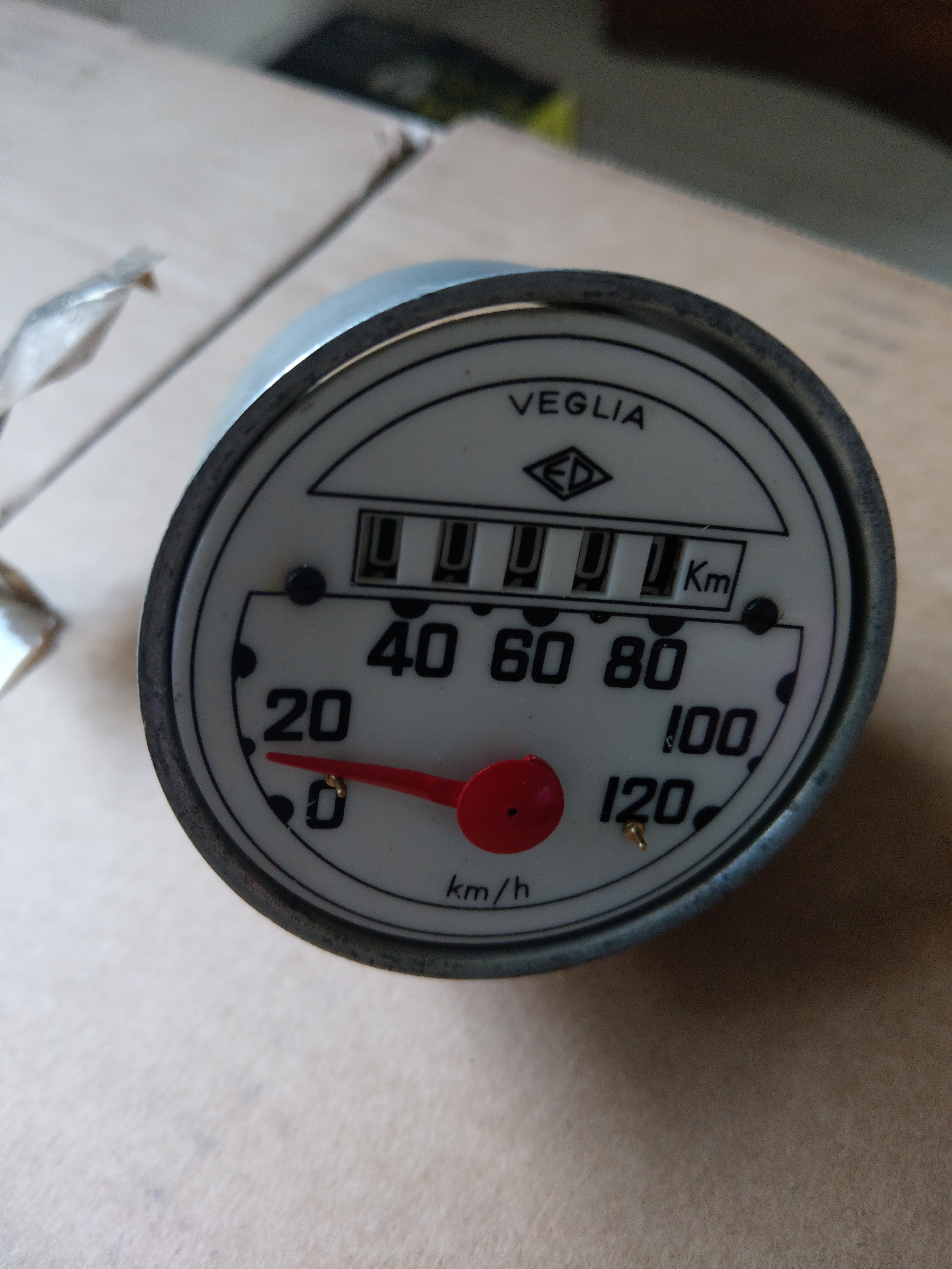 Histoire de débarrasser et de rendre service à un tonton, je vends un compteur Veglia 60mm 120 km/h neuf mais sans le joint de vitre et avec cerclage de mon S57 très moyen. 10 euros plus le port.