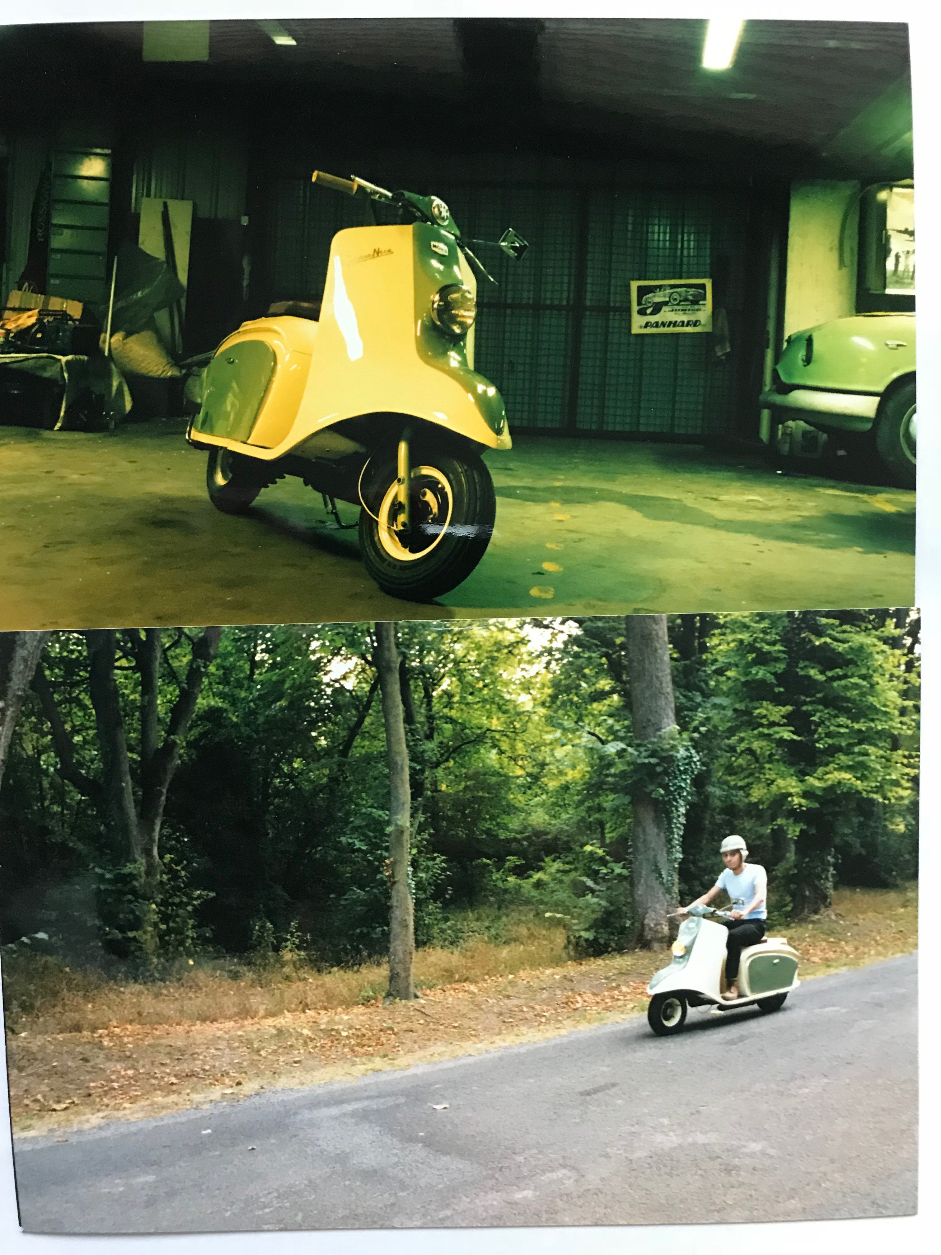 Celui de Raphaël est un Mors en N° 515, donc certainement un invendu de Mors, sorti des magasins en 57 ? Le Paris Nice n'a visblement pas beaucoup roulé depuis sa restauration, Raphaël préférant la stabilité sur 4 roues de sa Panhard. Du reste il avait fait une petite glissade en fin de freinage qui a gratté un peu le côté gauche