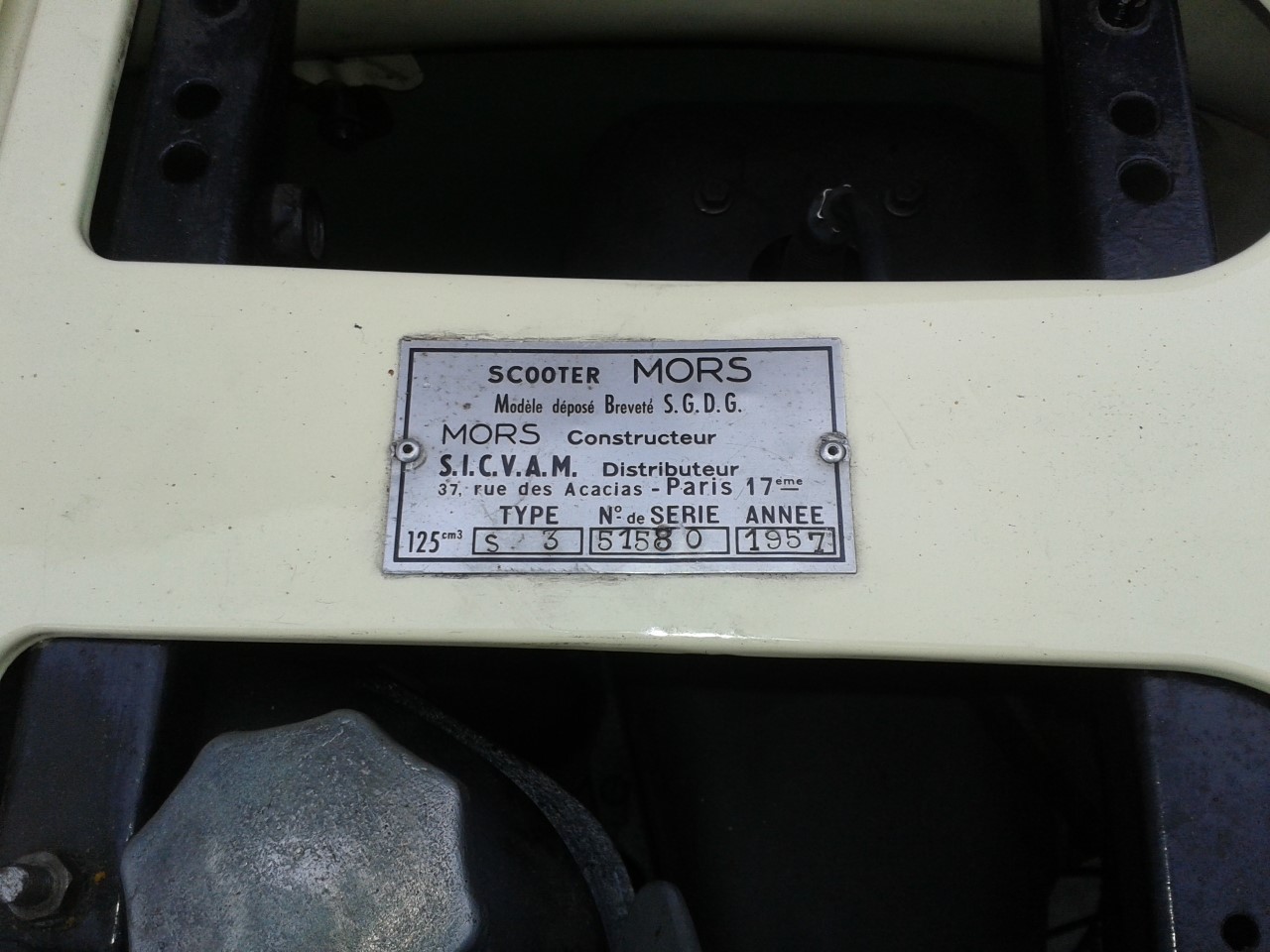 C'est un Mors de 57, ce qui paraît pas possible puisqu'à cette date c'étaient les établissements Gentil qui distribuaient sous la marque Alcyon les Paris Nice. Le mien est de 56 avec un N° en 505 et un Alcyon