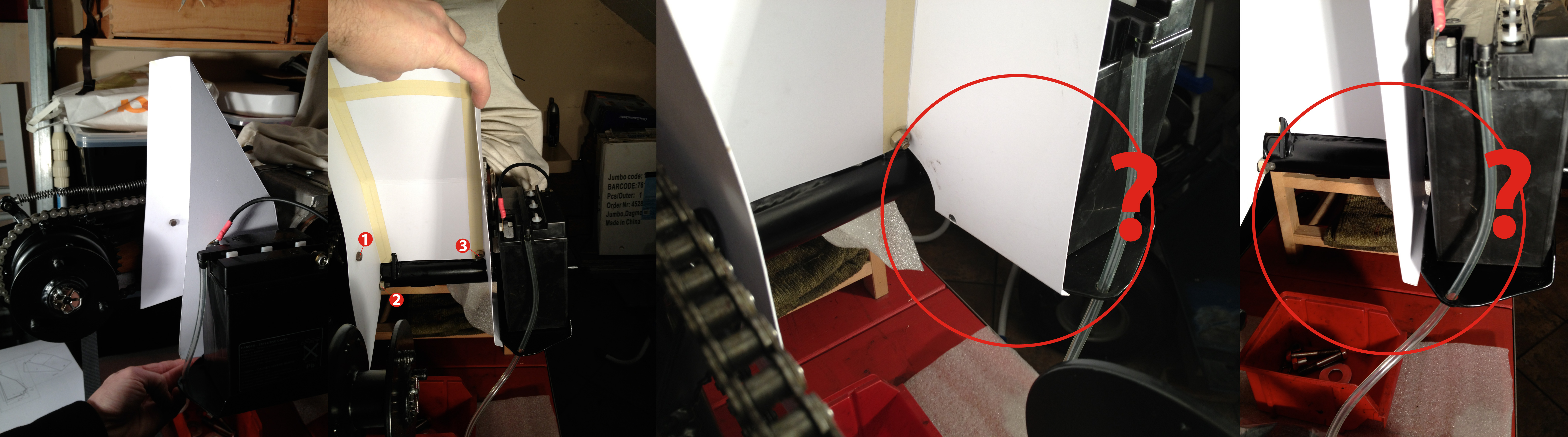 Pour réaliser au mieux cette refabrication sur la base du modèle d'origine qui est bien déformé, j'ai besoin de savoir comment la partie gauche du garde boue (côté batterie) se fixe sur