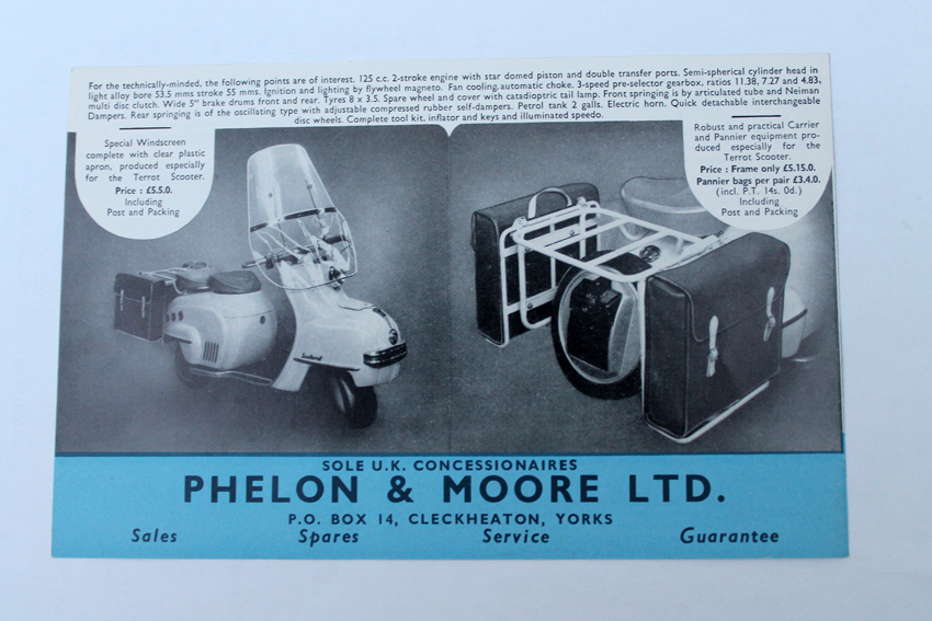 photo de la brochure anglaise du Terrot avec le porte bagages en question, il existe certainement un modèle qui a été proposé en France à part les sacoches classiques que l'on trouve sur toutes les brochures Terrot françaises...