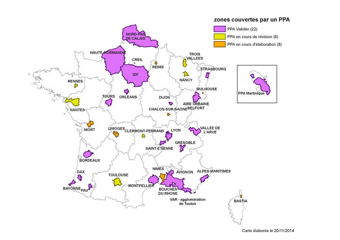 Cartes des villes concernées par le PPA (Novembre 2014)