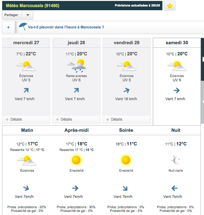 Il doit faire beau mais risque d'averse en principe; il y a quelques chaises longues aussi....