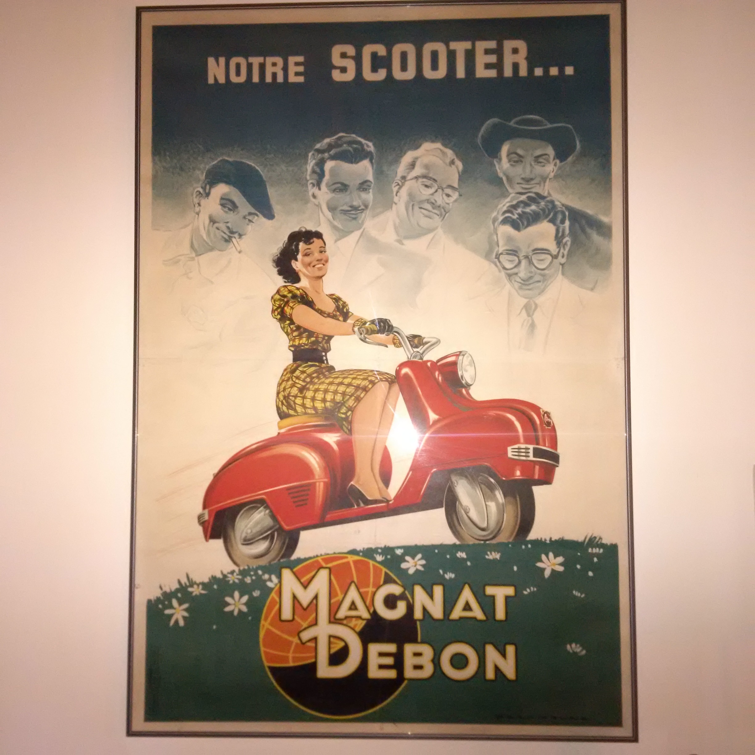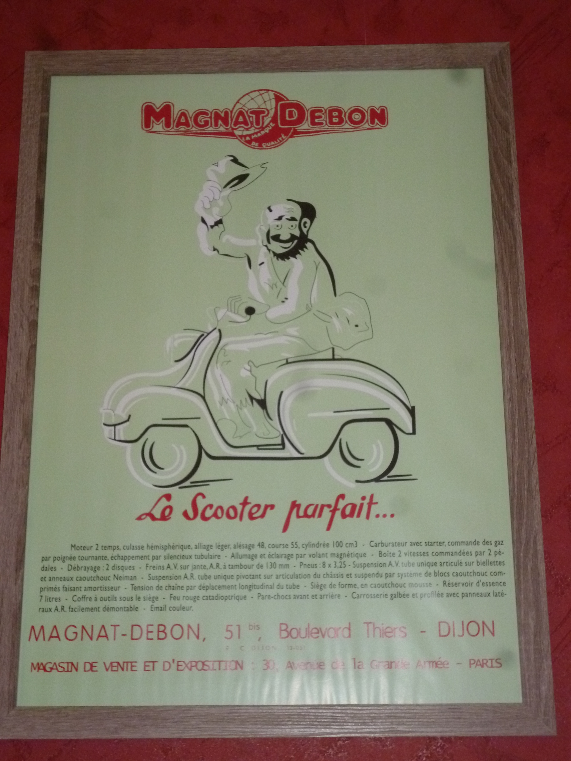 Affiche Publicitaire authentique pour le Scooter Magnat-Debon enfin encadrée... reste a lui trouver sa place... elle a séjourné 60 ans punaisée sur un mur d'atelier "mecanique Cyclo et tondeuses" - sa seconde vie devrait être une retraite plus confortable !