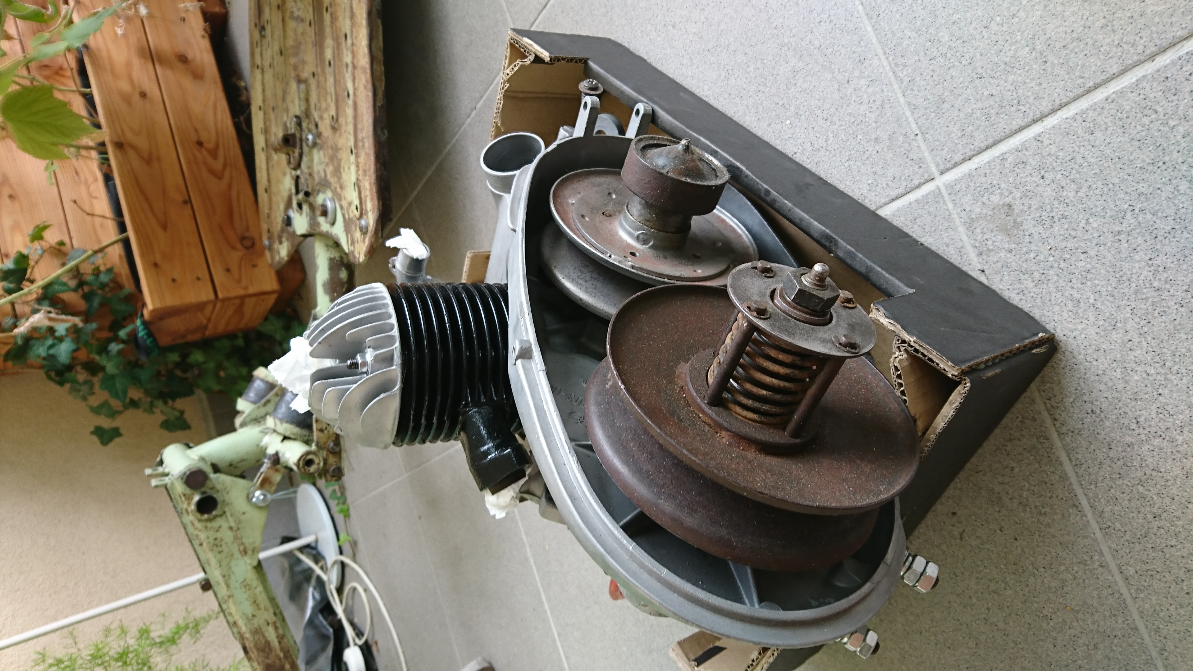 Le moteur a été déposé, le carter du lanceur lavé, la carter d'embrayage-transmission a été déposé et nettoyé.
