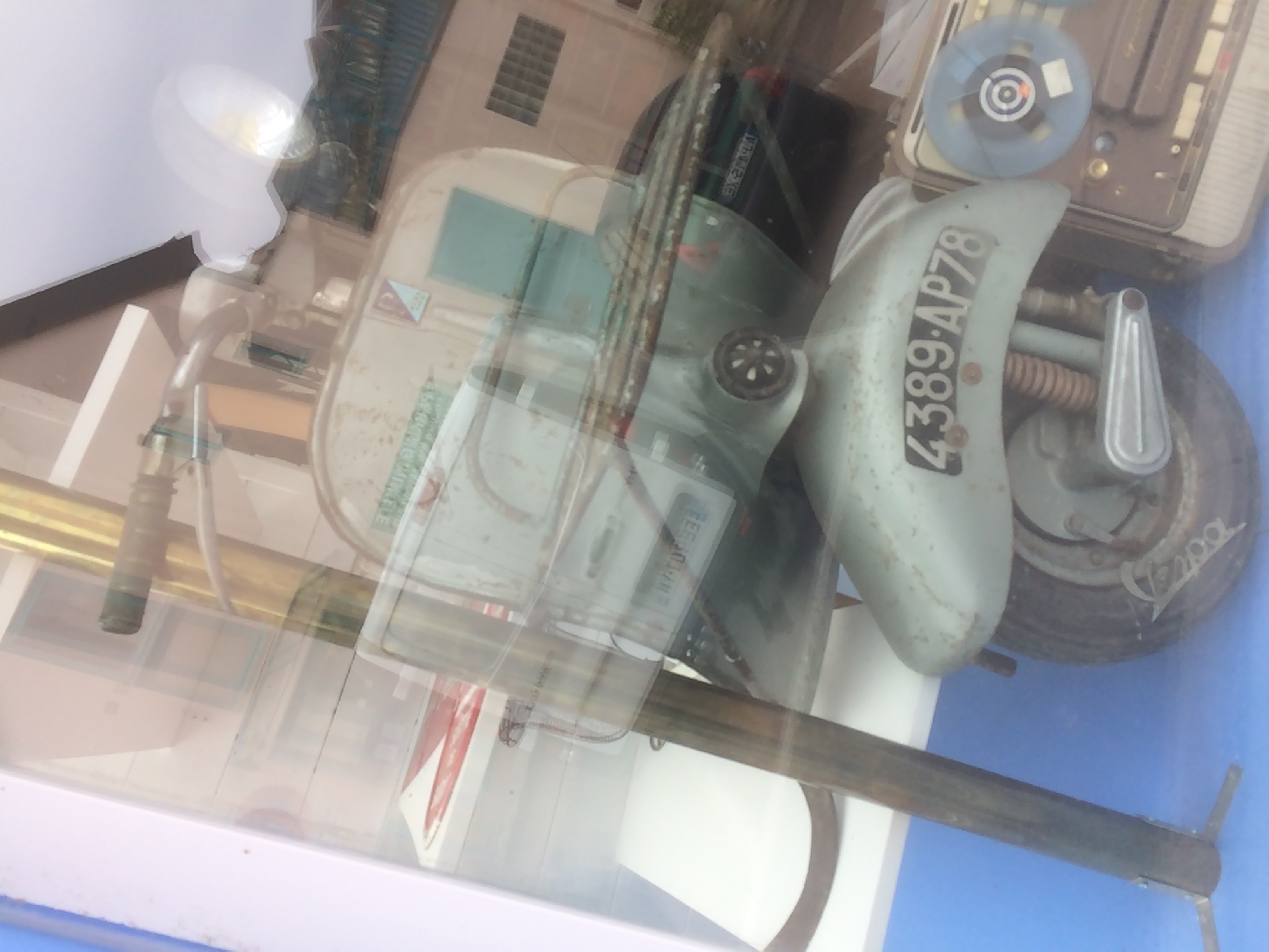 Vu hier à St Aubin sur Mer (14).le gus m'explique tout sourire que son boss a découpé le vespa paternel pour le mettre en expo dans son restaurant... grrrrrr