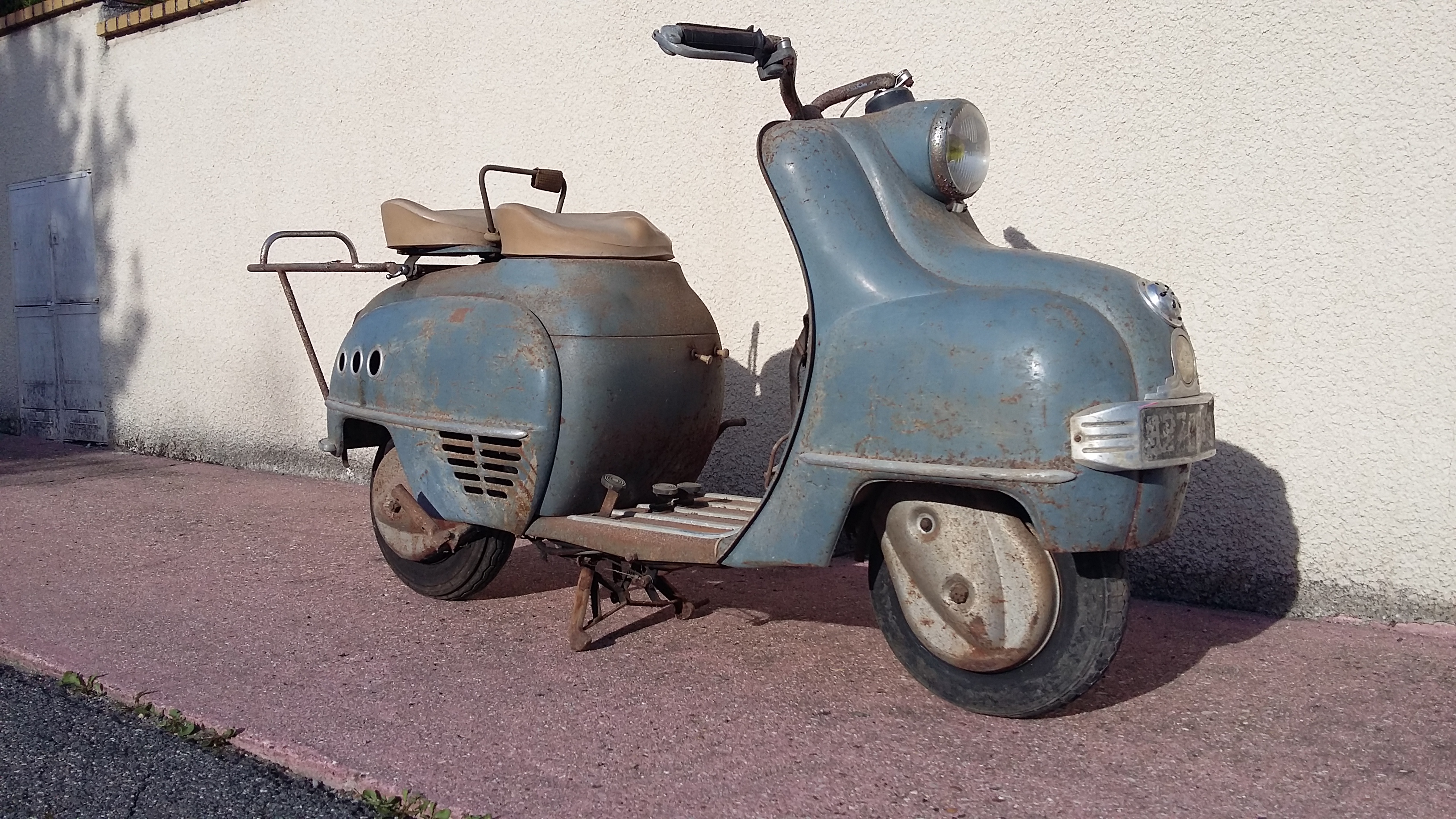 Sortie de grange le mois dernier, je me lance dans la remise en route de ce scooter de 1954. La base est correct et le moteur a une bonne compression.