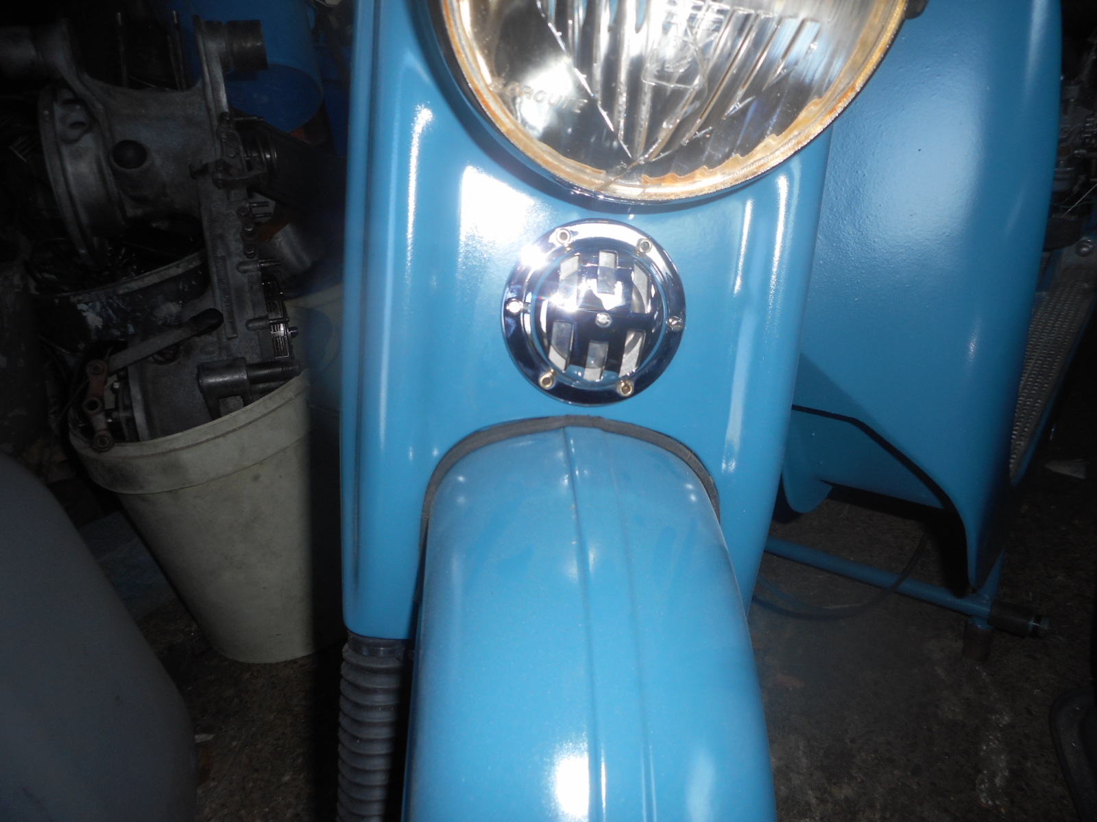 bon je reviens vers le petit speed, je viens de recevoir les deux leviers guidon ainsi que le couvercle de l'avertisseur donc j'ai remonté ce dernier avec les rivets creux a bord roulé en laiton comme a l'origine et ça a de la gueule.