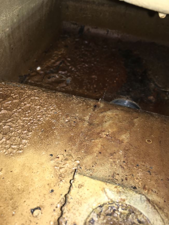 Joints refaits, mais il y avait la suite....la peinture d'origine qui recouvre l'intérieur en Alpax de ce beau réservoir, est toute gaufrée, la crépine du robinet toute bouchée, donc un démontage s'impose. Heureusement, le trou du bouchon est gros!