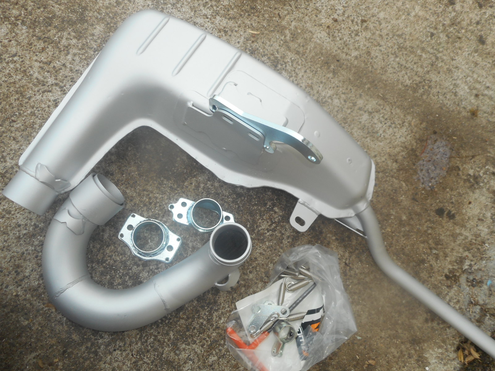 le pot d'origine c'est un clubman avec sortie mégaphone inutile de vous dire qu'au niveau bruit c'est intenable si "raid" me tombe dessus avec son sonométre je suis bon donc j'ai mis un pot classique de base bien moins bruyant mais qui doit un peu freiner les gaz mais j'attends un pot en commande très performant et relativement silencieux.