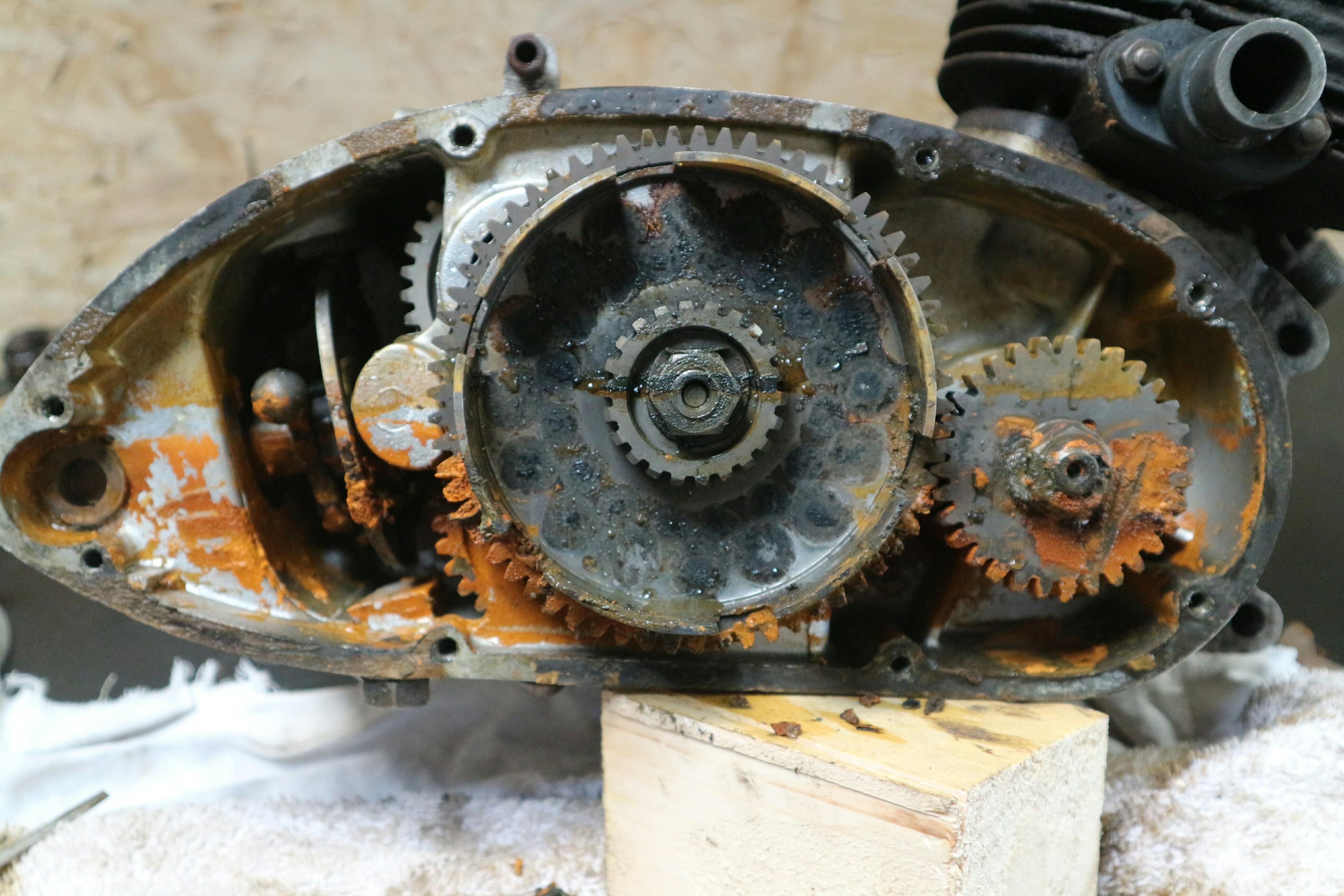J'ai trouvé un moteur Ydral en état correct qui vient d'un Poirier. Il aura malgré tout droit à un démontage complet pour remplacer les roulements et vérifier tous les jeux. Réalésage et piston neuf si nécessaire.
