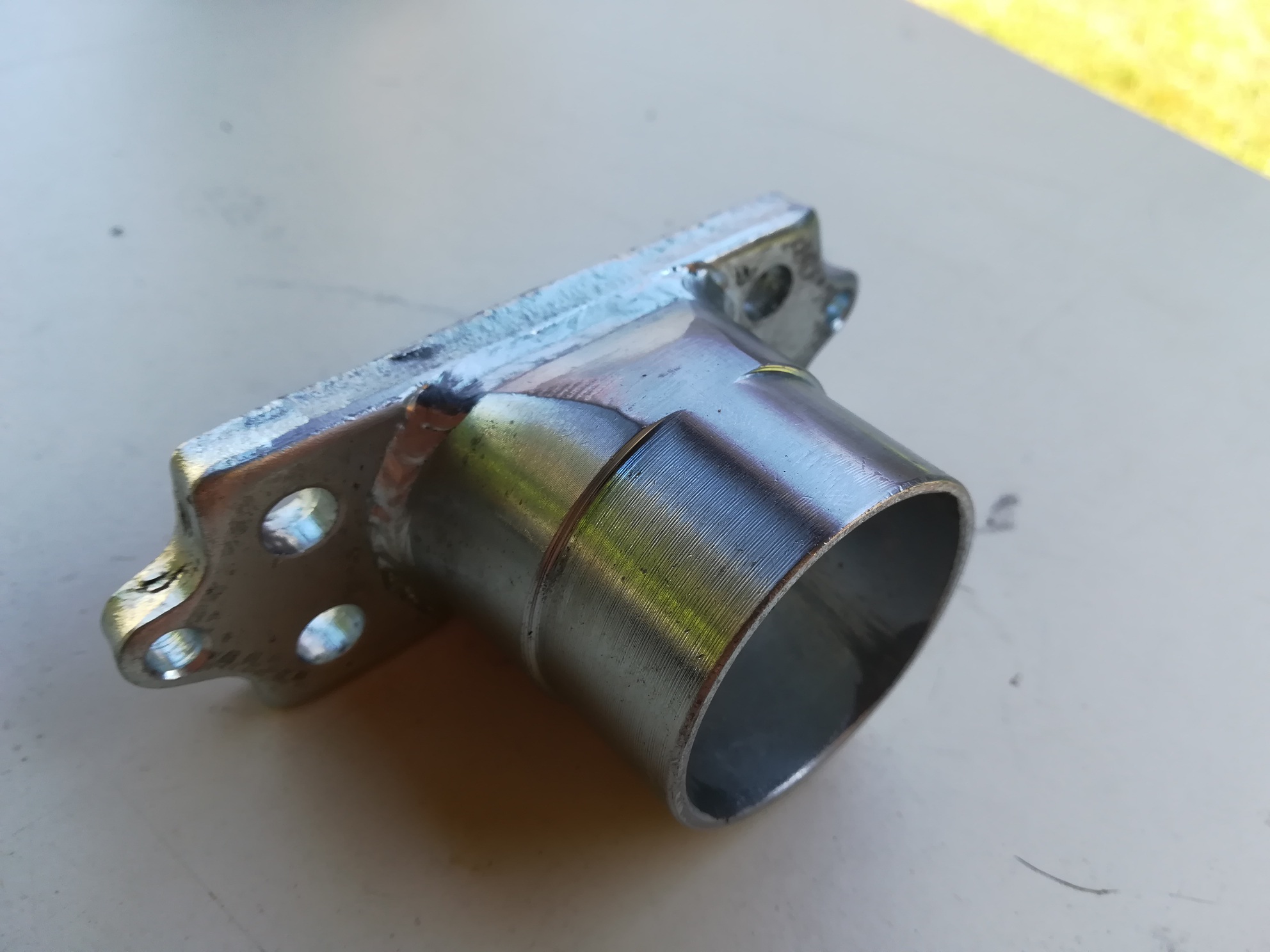 par contre tu as du meuler quelques ailettes du coté de la sortie échappement pour pouvoir placer la platine femelle pour le coude?.