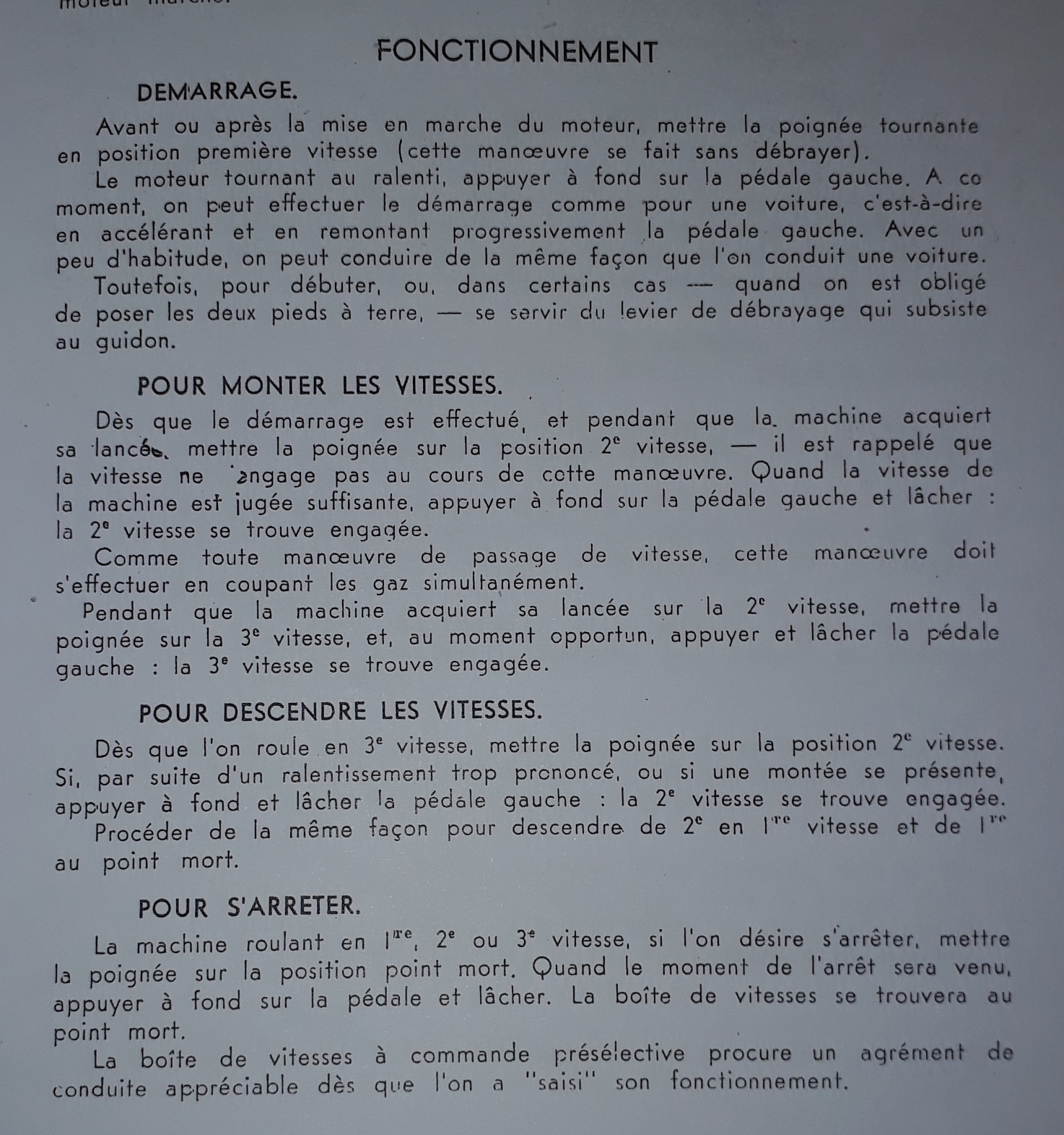 - 2 du pied gauche on appui sur la pédale (gauche) qui débraye et valide et enclenche le rapport inférieur présélectionné