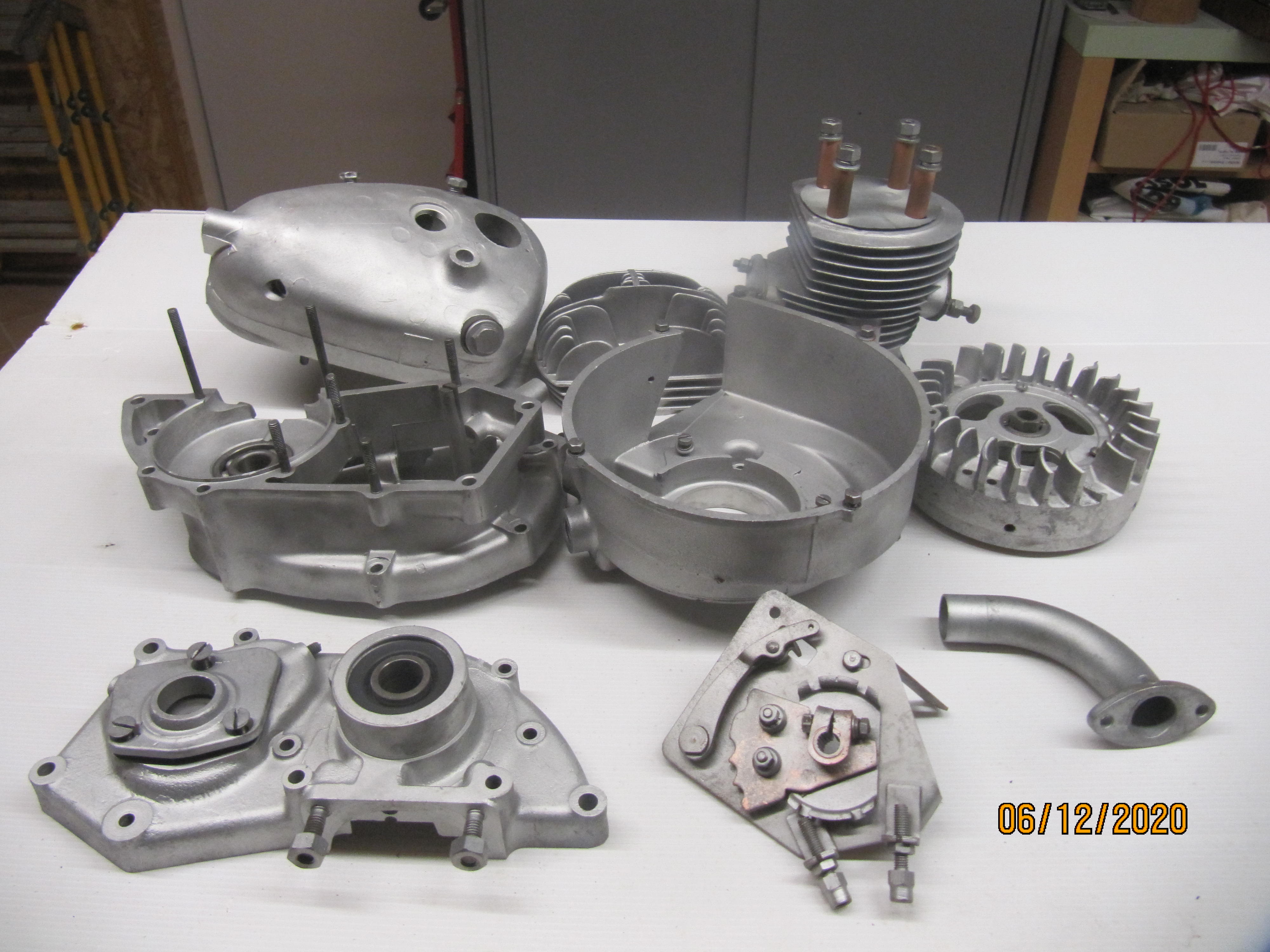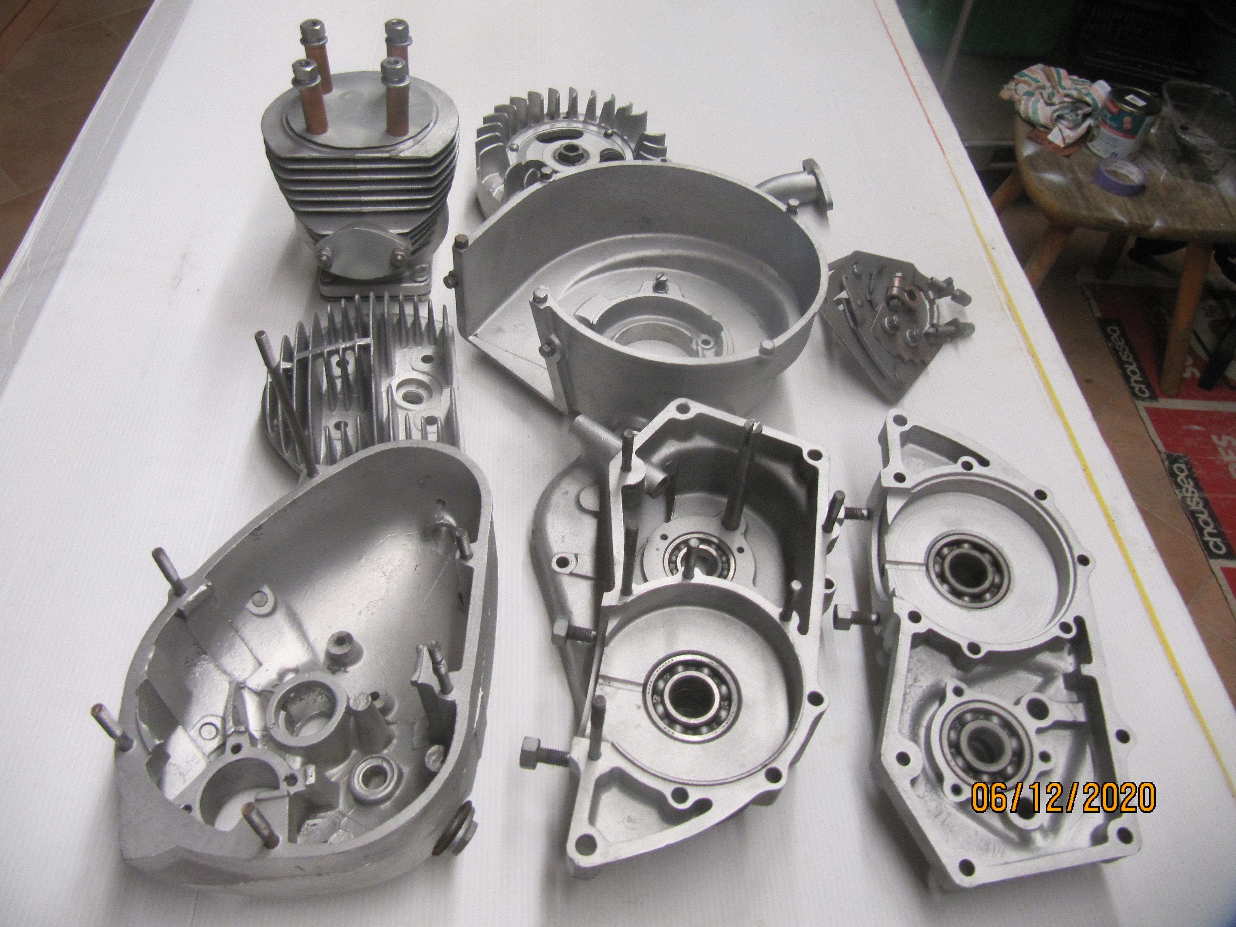J'ai donc terminé le démontage du moteur, hier je suis allé chez mon neveu qui a une machine à sabler En 1 heure et demi j'ai sablé mon moteur à la bille de verre, résultat impressionnant!!!!!!. Je vais vous mettre quelques photos.