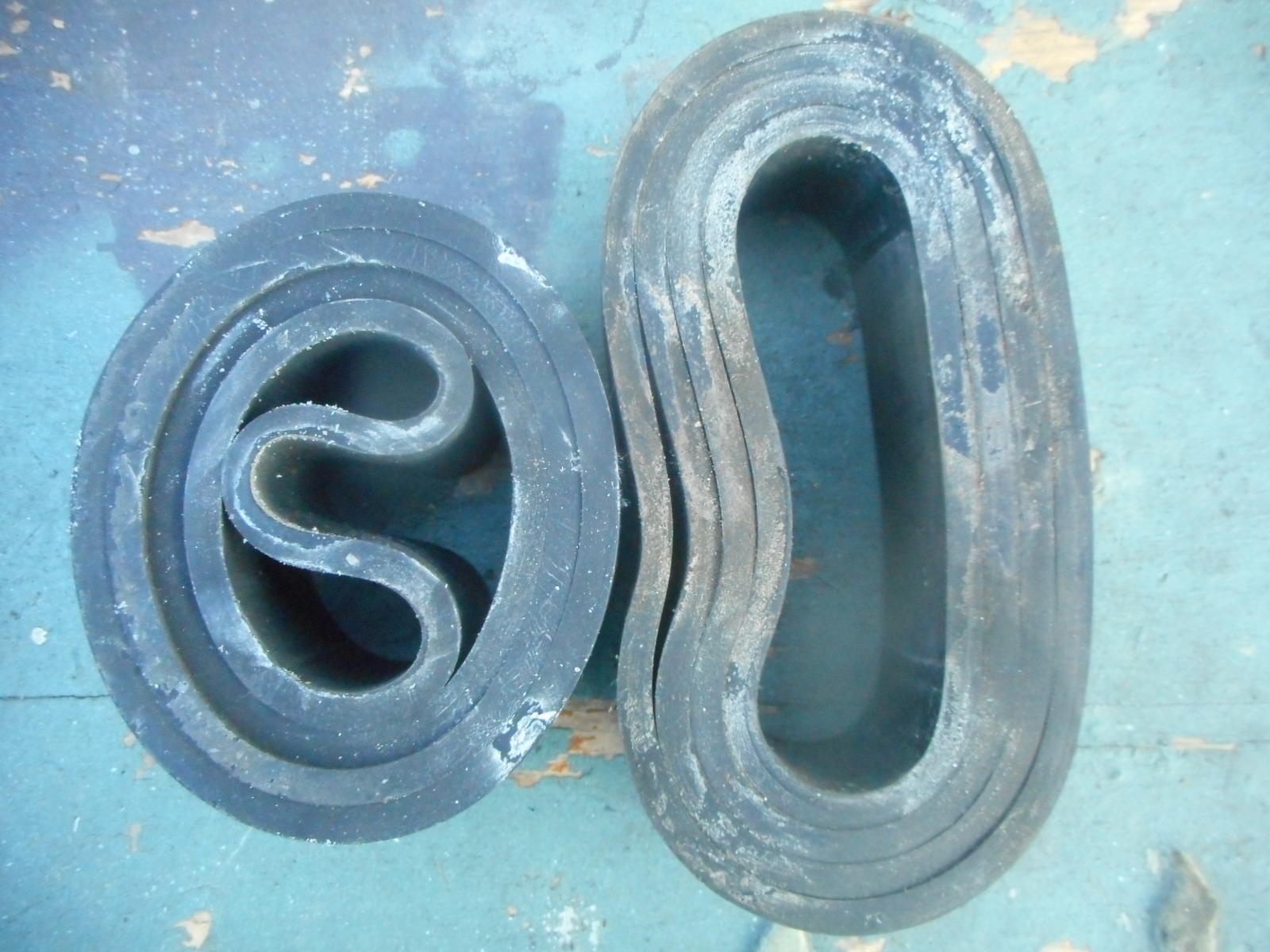 Voici ma version: Bloc de 5 anneaux de la marque TRAX/Trigano remorques; Fourreautage des axes avec des tubes (préconisés par mcdouve) en matière plastique dure, genre Teflon,usinés à dia.36, long.38,passage d'axe 10. Je ne conserve que 4 anneaux (5 çà ne passe pas avec les fourreaux épais), en mettant de côté le plus petit; l'essai sur route, à venir, confirmera mon choix , ou bien j'inverserai le + grand avec le +petit! A l'occasion, j'ai profité de ce démontage pour repeindre les éléments du bras de suspension et remplacer la vieille graisse et les joints spi de l'axe principal.