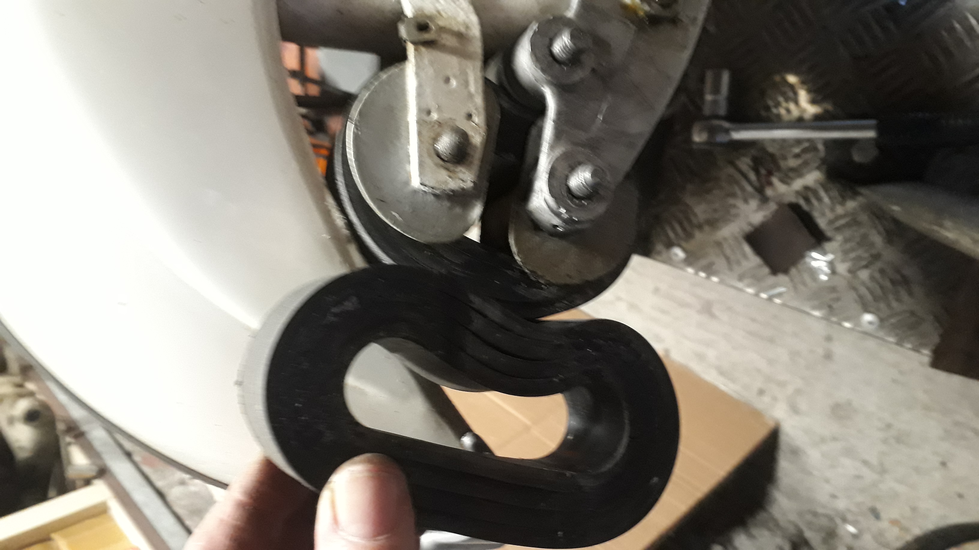 salut, je viens de change les anneaux de suspension av sur un s57( qui n'est pas a moi) et j'en profite pour faire un topo car la question revient trés souvent et il faut bien le constater cette opération est mal faite pratiquemment a chaque fois comme sur la photo ou les anneaux sont trop laches avec pour conséquence a l'étirement des anneaux une roue av qui va frotter le gb au freinage ( dangeureux) ou sur les innombrables casses vitesses avec en plus le pot qui va racler et au contre étirement des coups de raquettes et des claquements, sur la photo on voit bien le jour a l'intérieur des anneaux ( pas bon) avec un balancier plutot a l'horizontal.