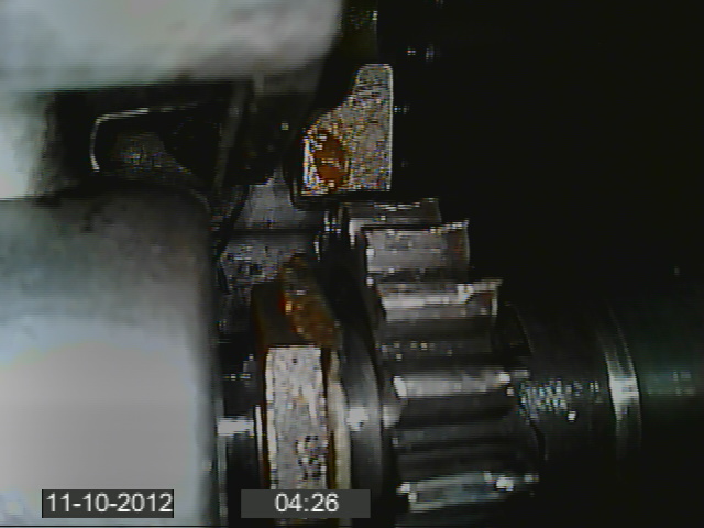 Je me doutais que cela ne sentais pas bon, j'ai passer un endoscope afin de voir à l'intérieur du carter, voici les photos d'un pignon malade je crois !
