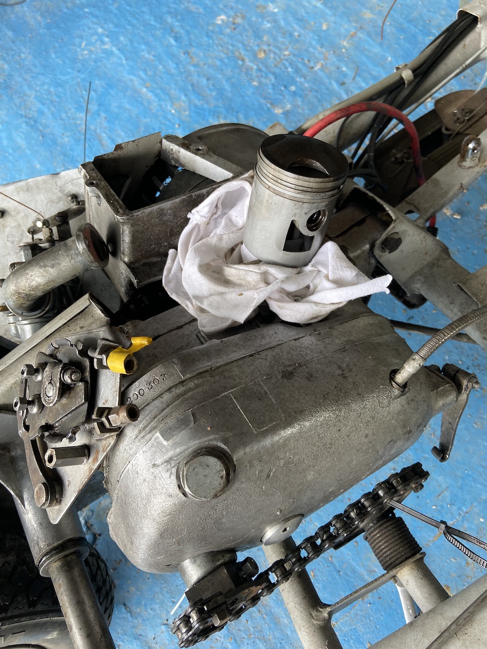 Lors du démontage je m'aperçois d'une fuite au niveau bas moteur, donc je décide de démonter le moteur afin de remplacer les joints ( bas moteur et culasse. Je commande chez macadam et je reçois des joints papier d'époque ainsi qu'un joint de culasse qui ne correspond pas.