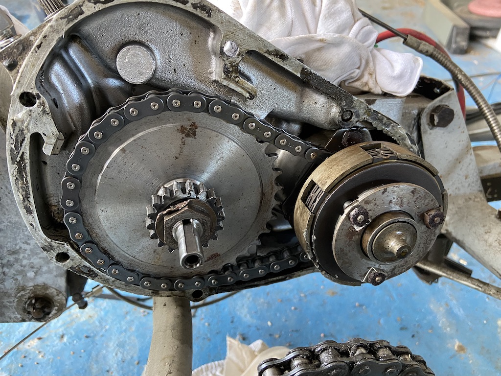 pour 17 ou 18 dents je parle du pignon sortie de boite qui est relié a la chaine qui va a la couronne ar et pas celui du lanceur en photo, normalement les embrayages laiton sont quasi indestructibles sinon se tourner vers les motos de la marque c'est commun et assez courant et pour le jeu peut etre le roulement fatigué.