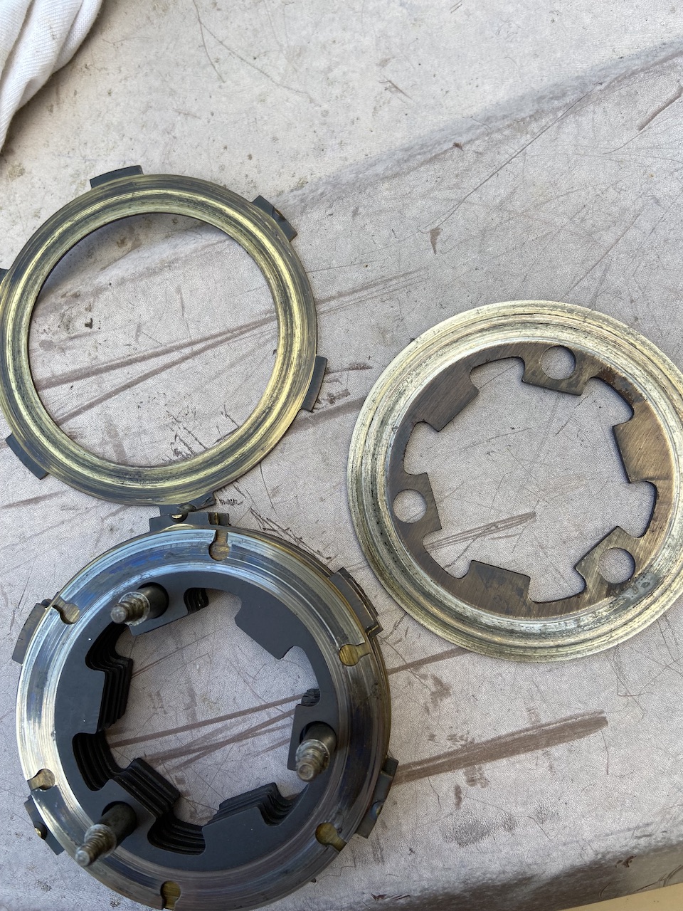 => Ton embrayage n'est pas le bon modèle pour un S57C. Tu devrais avoir des disques ferodo et non pas en laiton.
