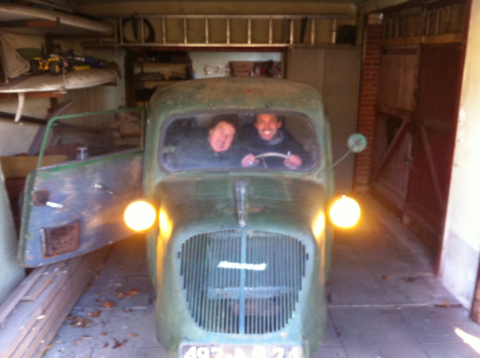 11h45 - Arrivée dans la périphérie de Lille et fabuleuse rencontre de l'hauteur Hervé Rousseau qui a acheter en 2009 ce Triporteur aux enchères.