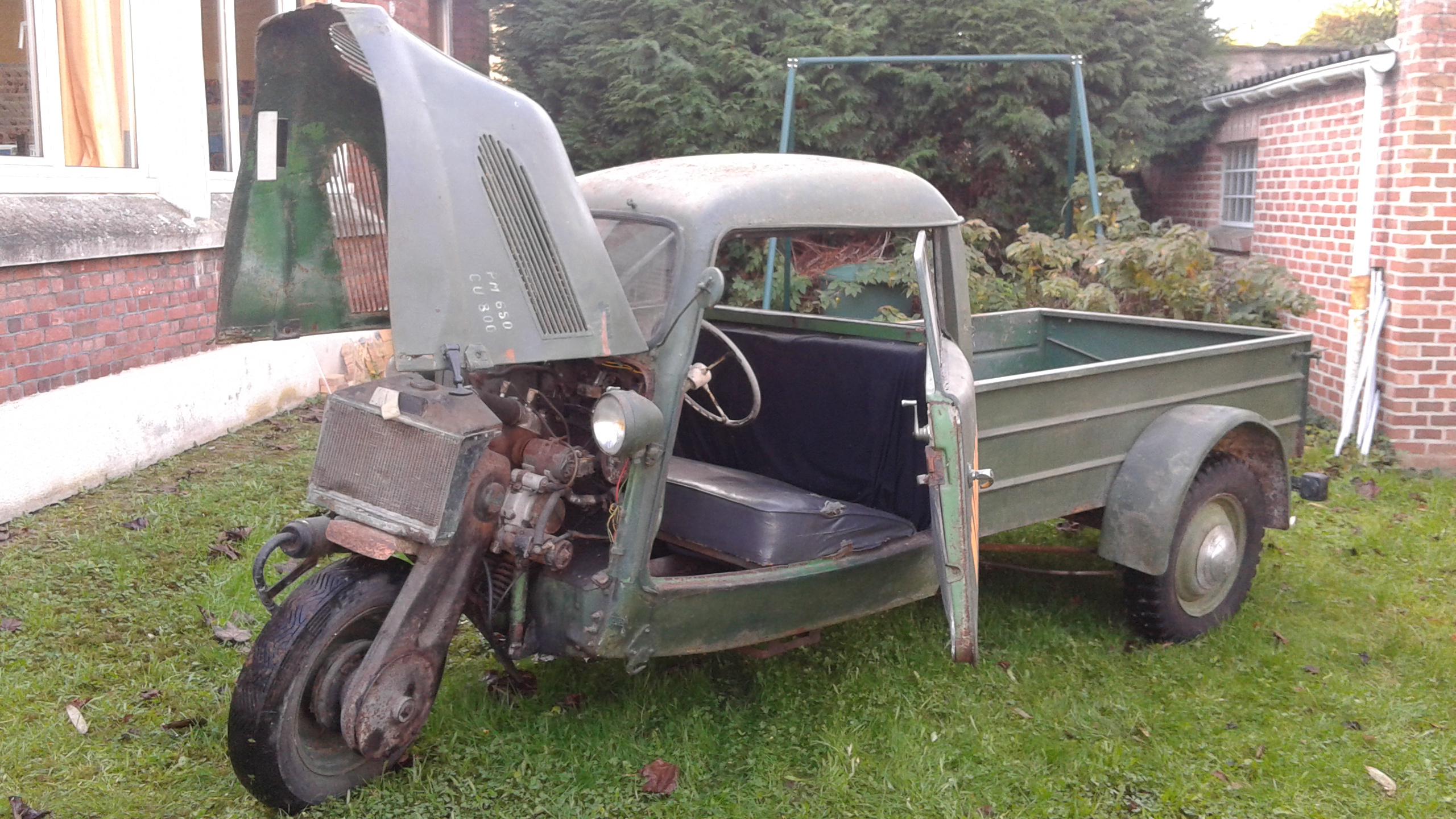 Ce triporteur qui était dans un bien triste état est parti pour retrouver son aspect de sortie d'usine