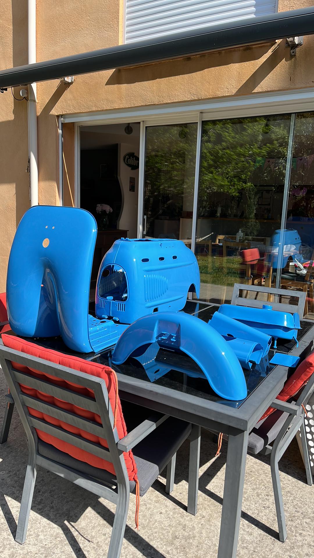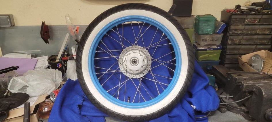 le scooter a été acheté au moi de mai 2021 et le chantier avance doucement ( et c'est un choix personnel ^^) , tout le cadre a été sablé et peint époxy. malheureusement je me suis trompé sur le choix de la couleur je vais donc refaire sabler le tout .... le moteur a été entièrement nettoyé ( microbillage , bain ) et est en cours de remontage . je joins une photo du bleu que j avais choisi et qui au final ne me plait pas .