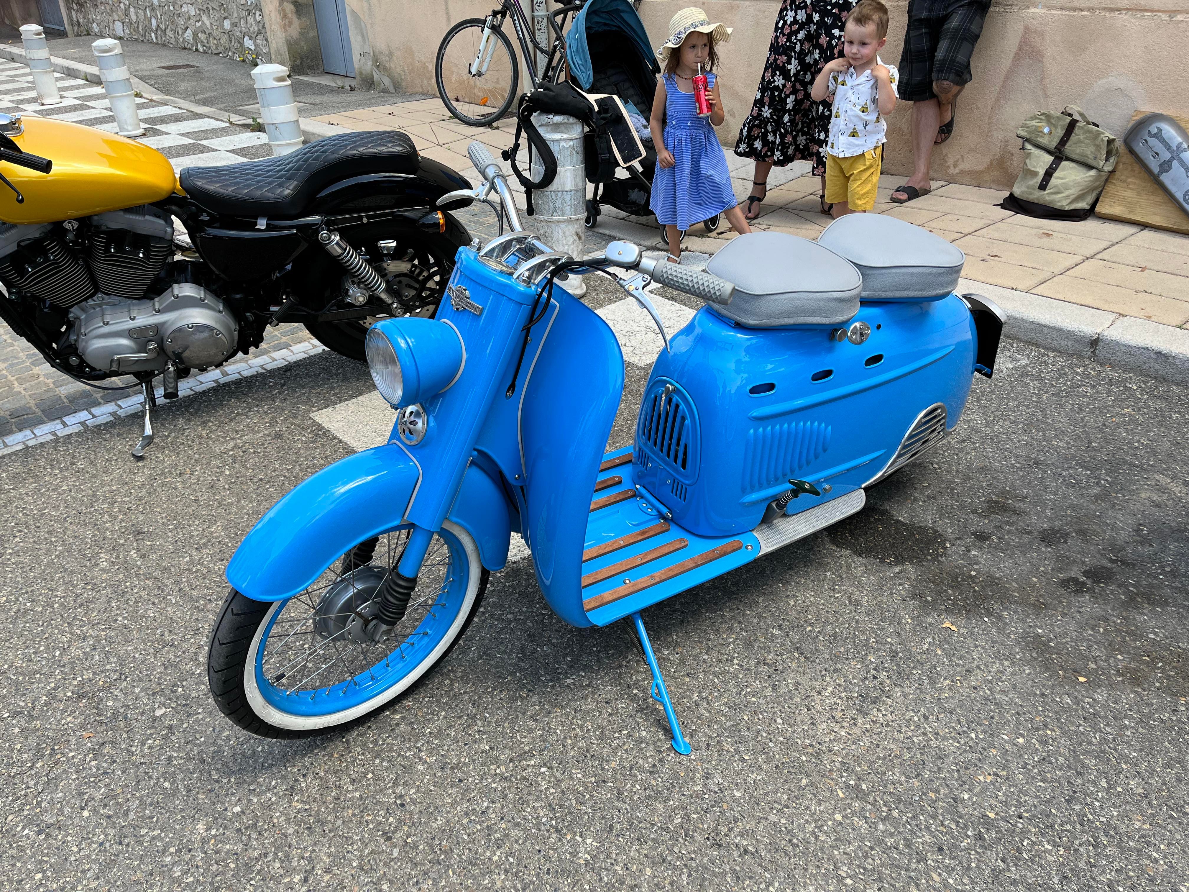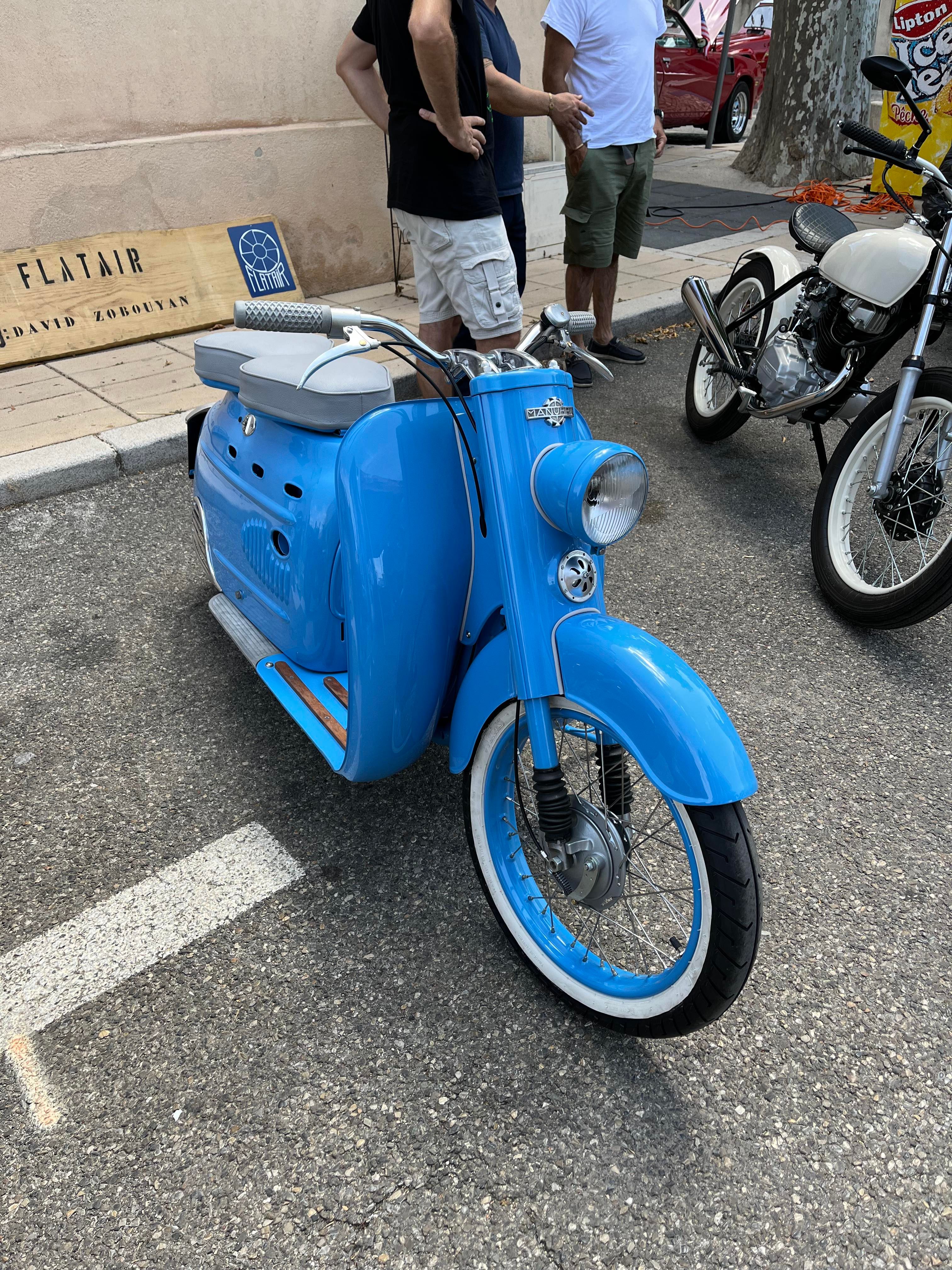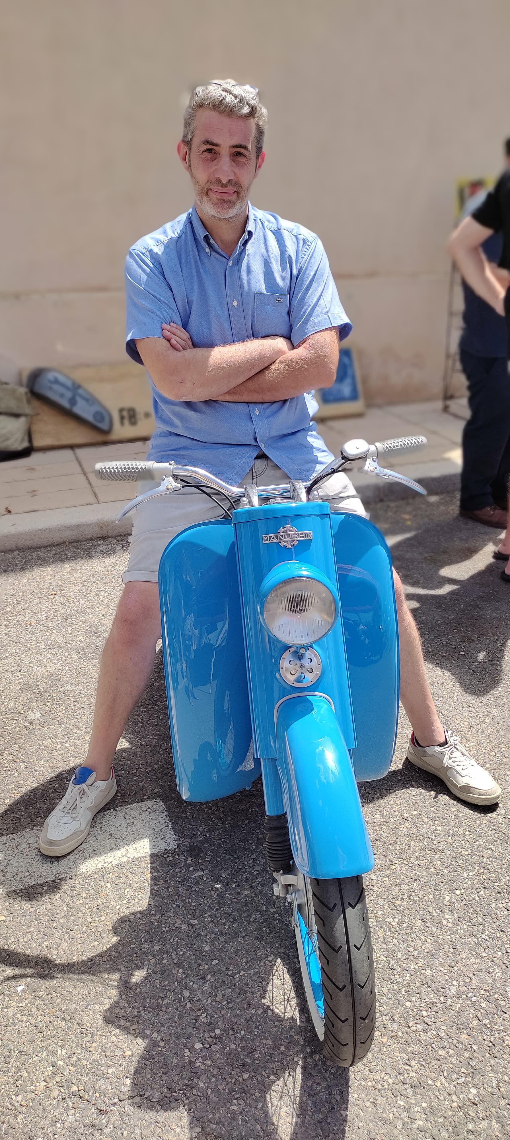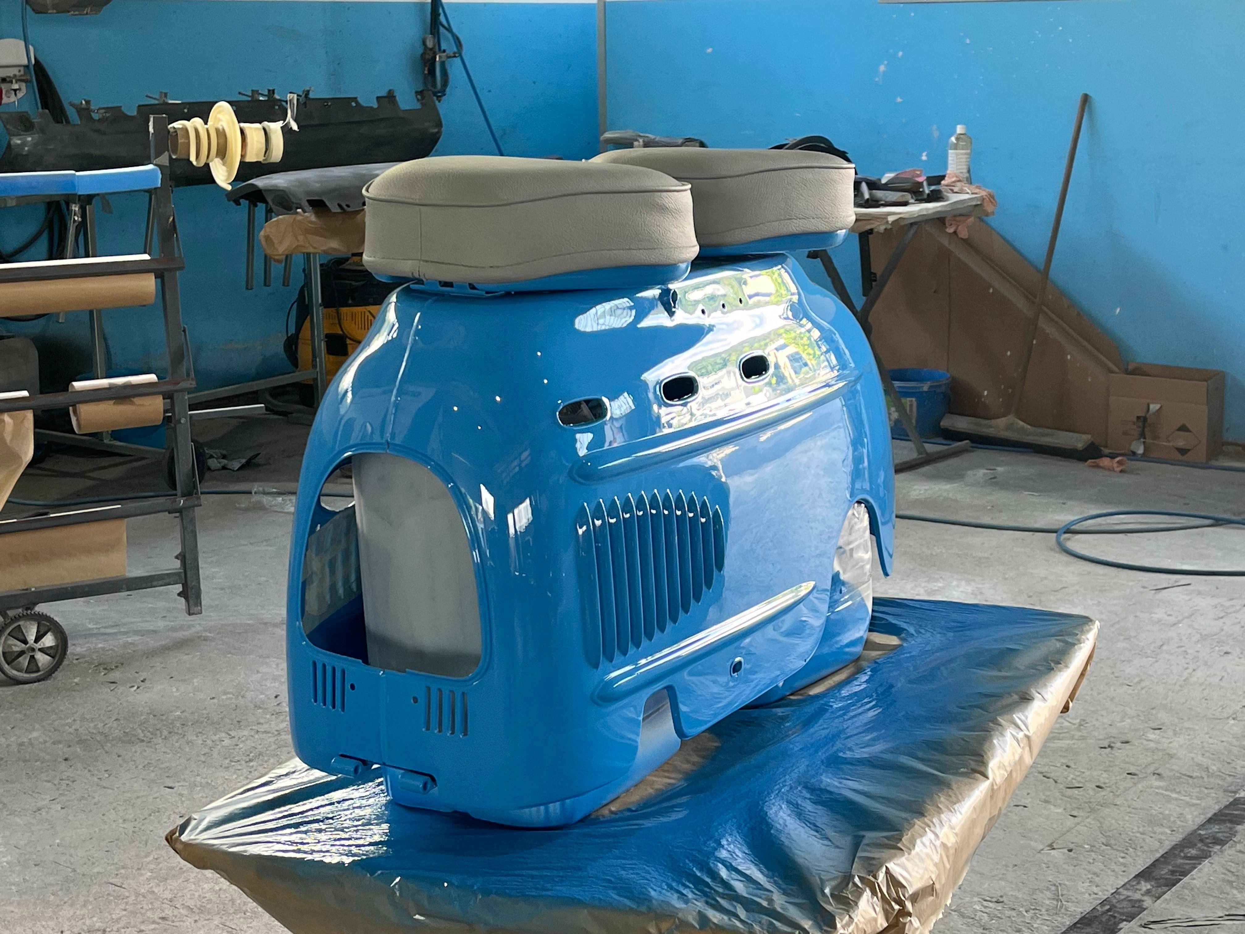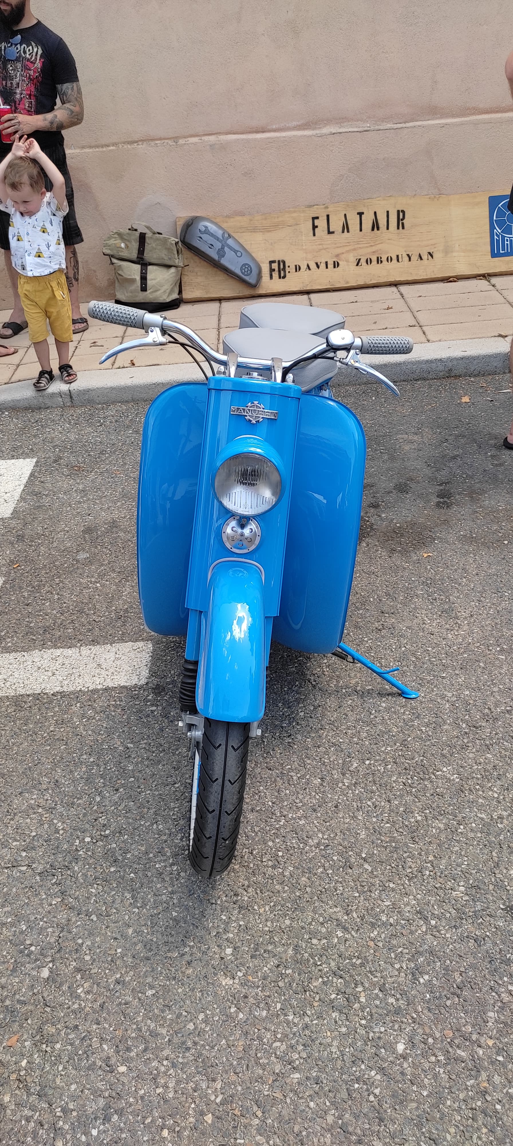 le scooter a été acheté au moi de mai 2021 et le chantier avance doucement ( et c'est un choix personnel ^^) , tout le cadre a été sablé et peint époxy. malheureusement je me suis trompé sur le choix de la couleur je vais donc refaire sabler le tout .... le moteur a été entièrement nettoyé ( microbillage , bain ) et est en cours de remontage . je joins une photo du bleu que j avais choisi et qui au final ne me plait pas .