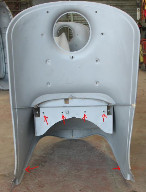 (Flèche bleue = baguette de fixation de la bavette)