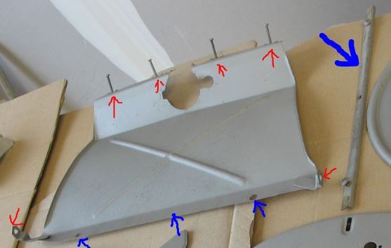 (Flèche bleue = baguette de fixation de la bavette)
