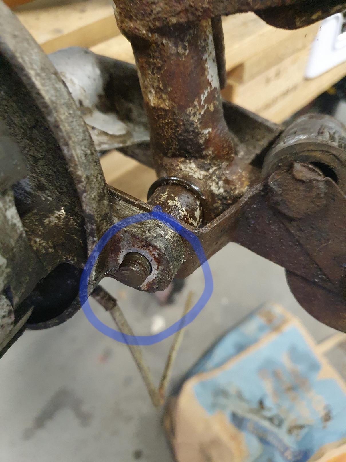 Le cycle n ayant pas ete restauré depuis des années, très possible que l axe soit grippé, a moins qu il soit vissé ?
