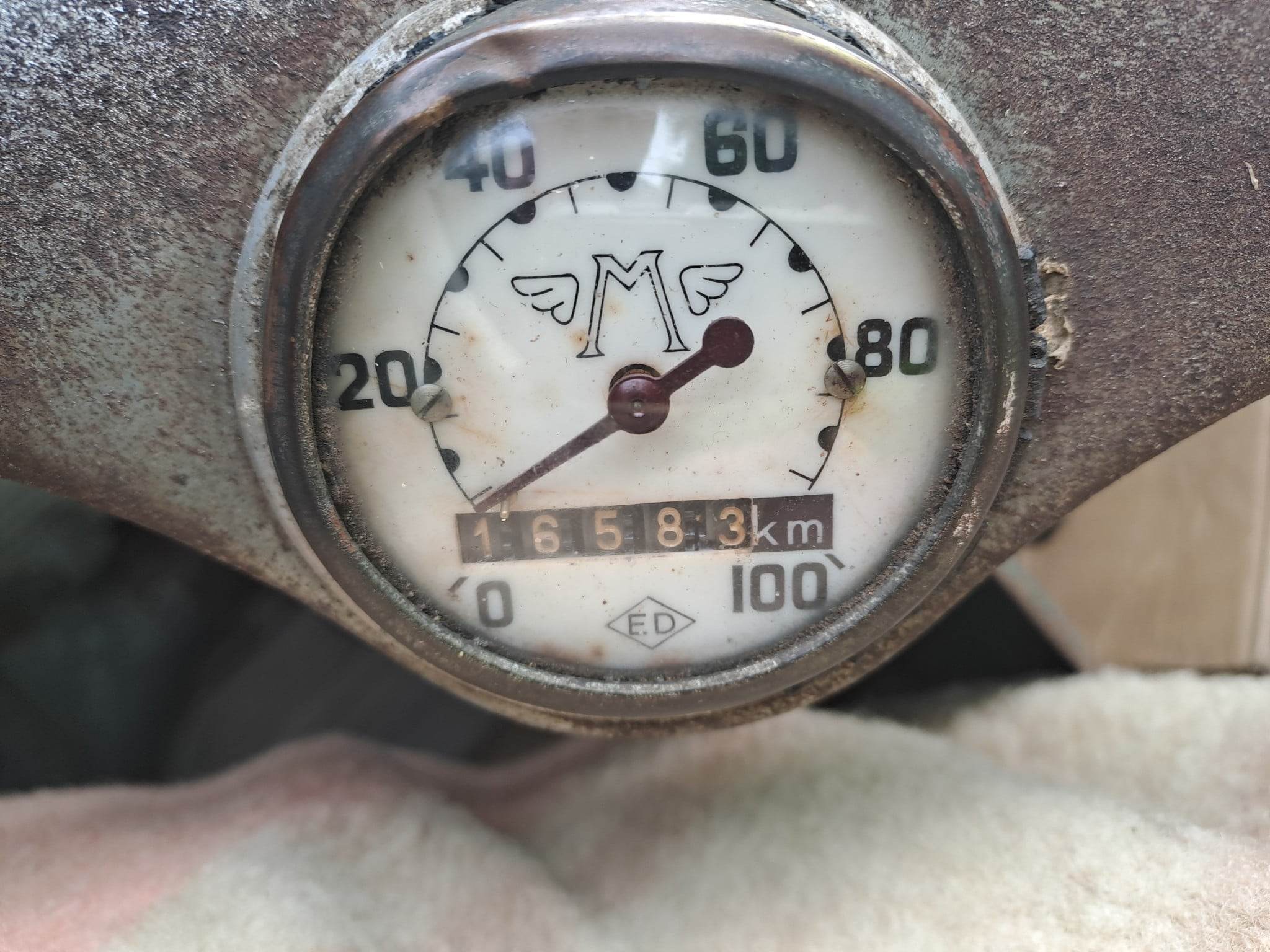 La plaque d'imatriculation/feu arrière sur le Motoconfort de "1953"
