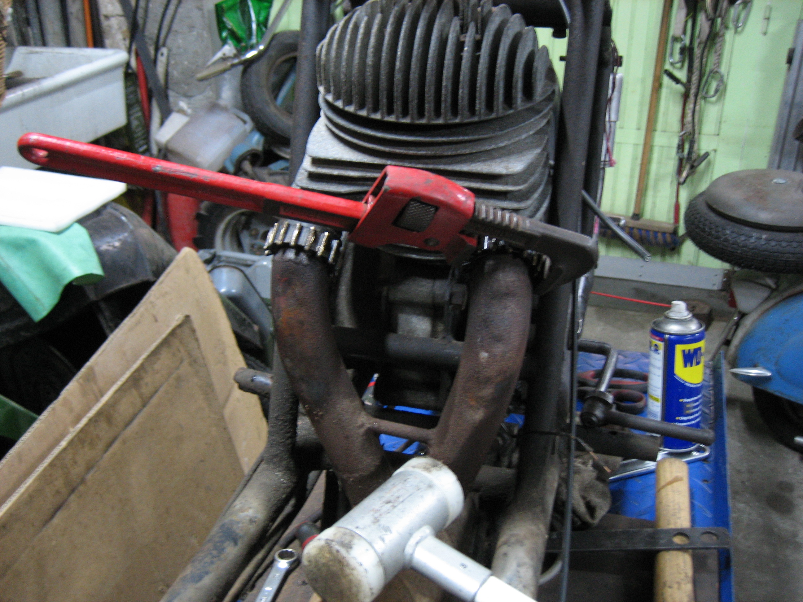 Soulèvement de la culasse car, elle ne sort pas sans enlever le moteur du cadre.