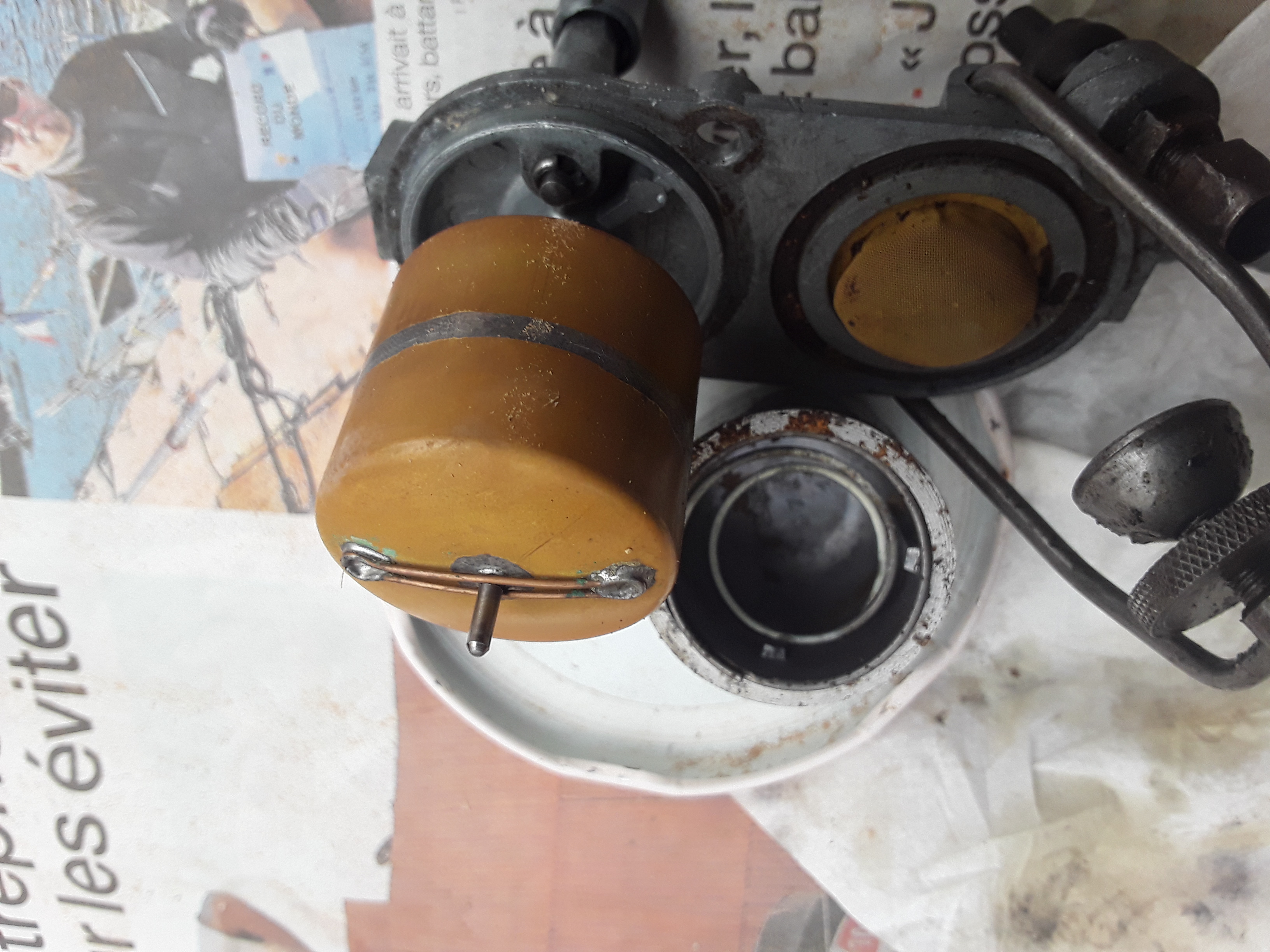 Le mamelon vissé dans le réservoir comporte une tétine qui est soudée à l'étain où se raccorde le tuyau d'essence qui va au robinet