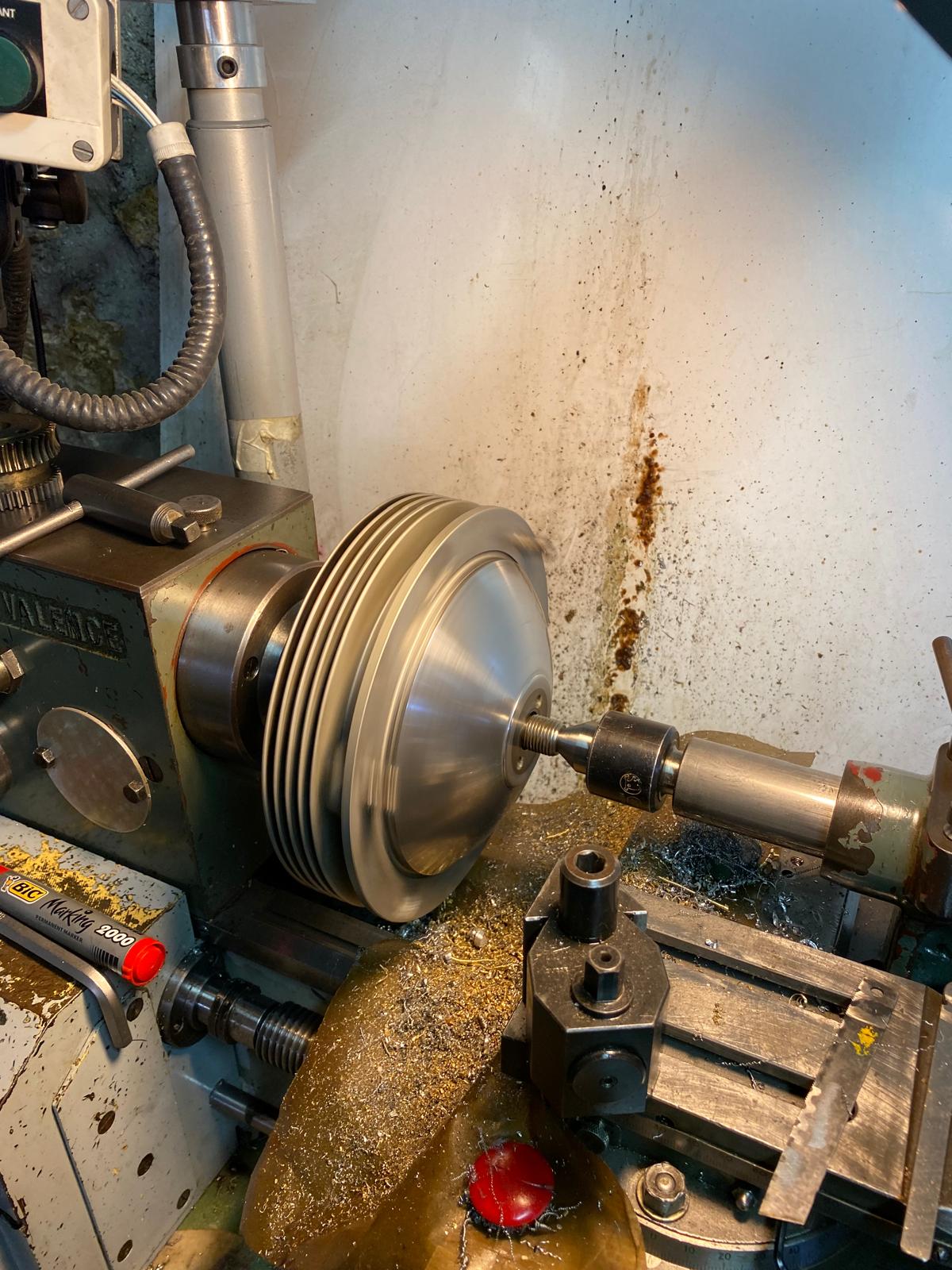 Mon frein arrière était plus proche d’un ralentisseur que d’un frein alors je me suis décidé à démonter pour contrôler. Effectivement les garnitures ne portaient que sur quelques mm … donc montage sur le tour et en avant