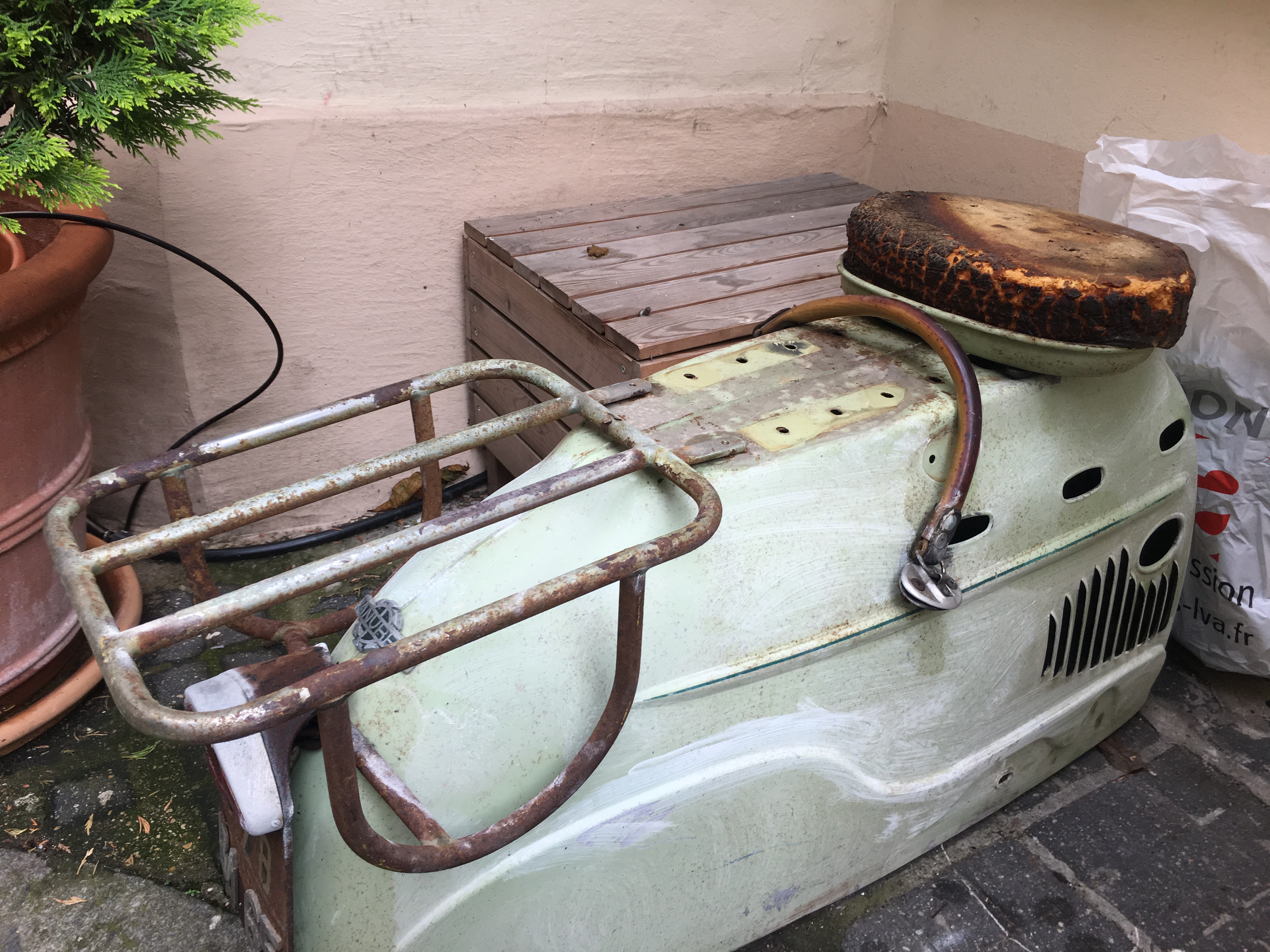 Aujourd’hui j’ai brossė le châssis et démonté ce qui ne servira plus (pot, couronne, carter...)