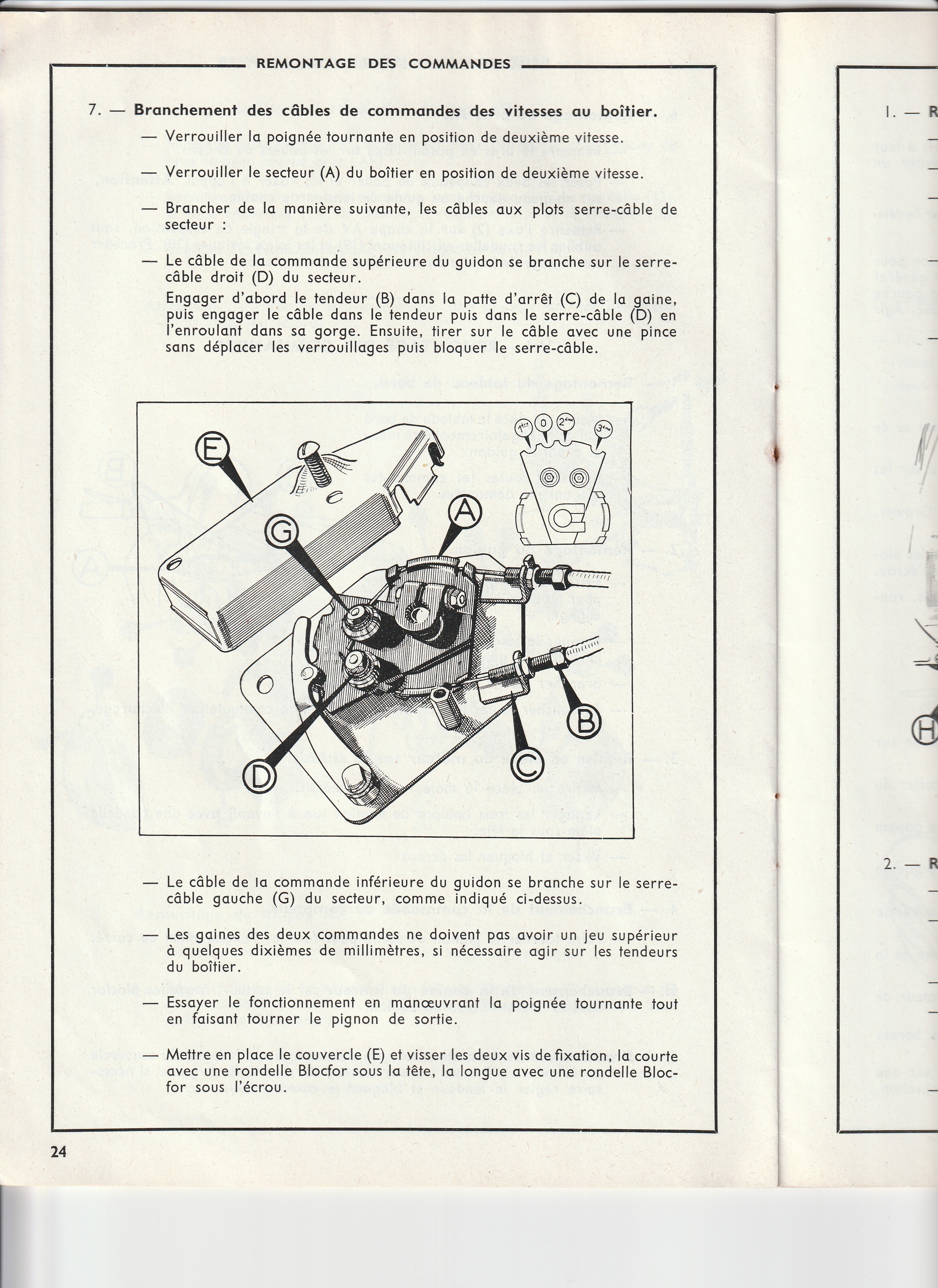 - Ajuste les câbles sans tension excessive en position du 2ème rapport (au guidon et au boitier récepteur)