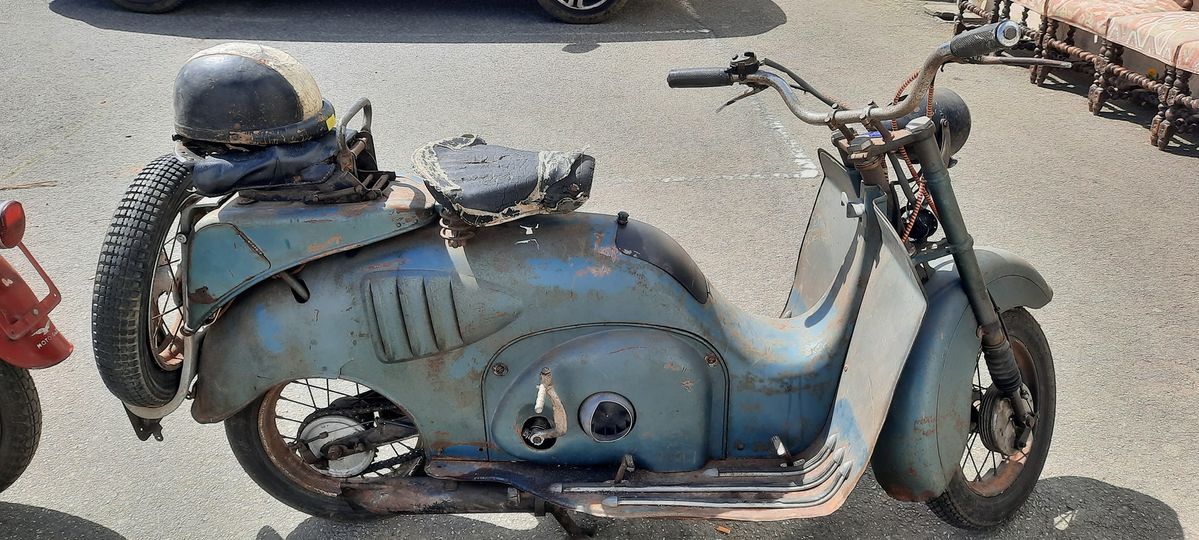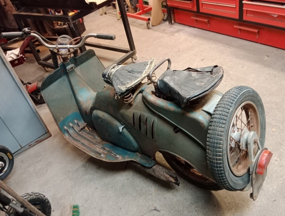 Un bon pote de Domfront (61) souhaite se séparer de son scooter ISO 125cc de 1952, Il est complet, dans son bon jus d'origine.