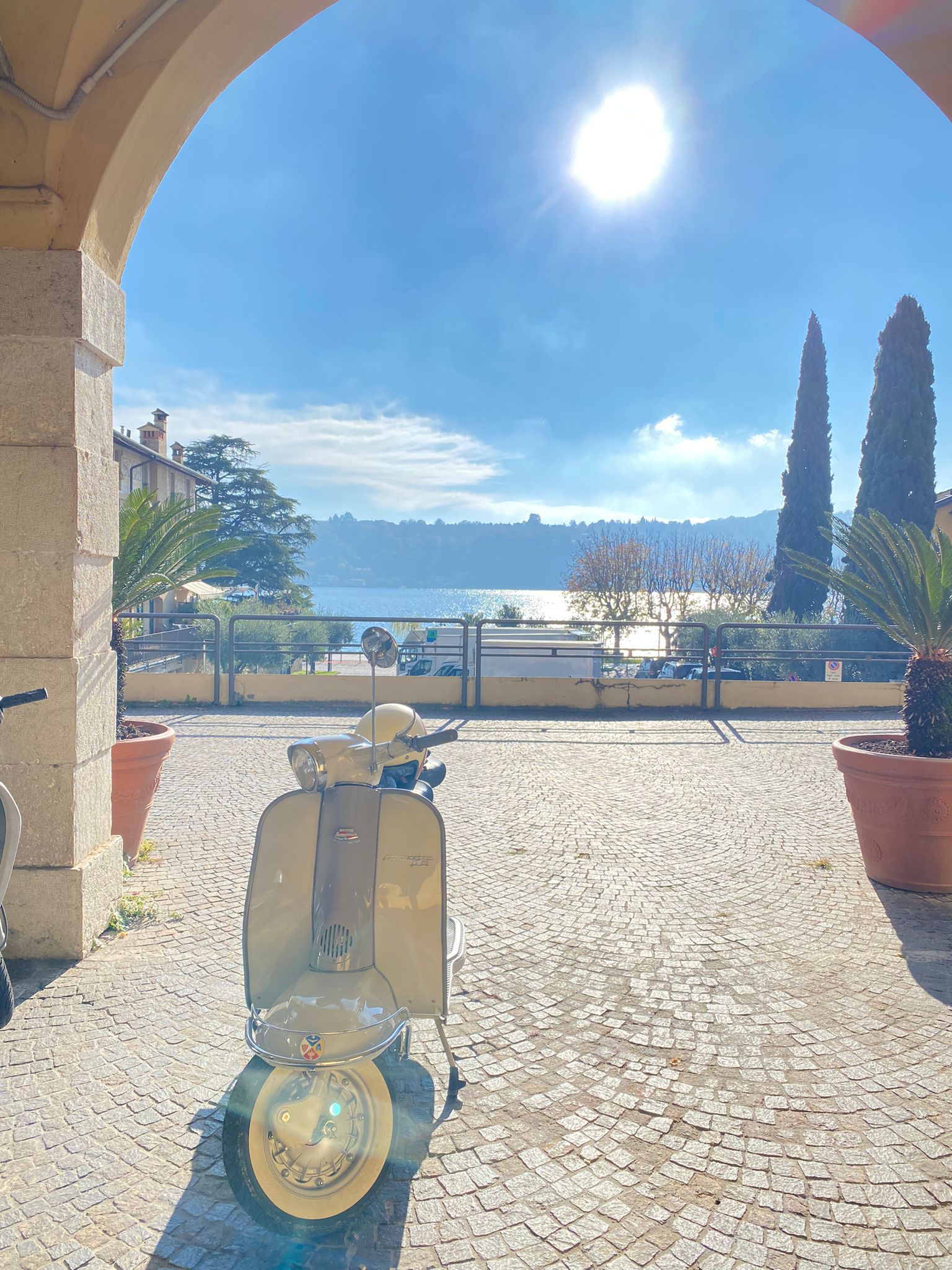 Salut Philippe. Un vieux scoot sur une terrasse du lac de Garde, la c'est vraiment la Dolce Vita