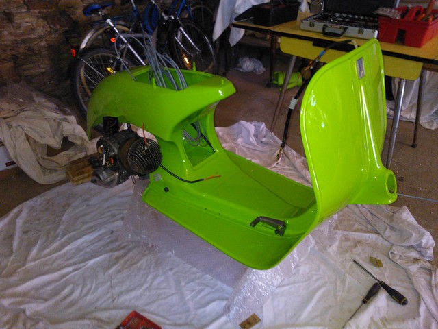 j'en ai eu marre de décaper pendant mes vacances, direction le peintre locale (qui m'a gardé le scoot 1 an, mais le résultat est ok)