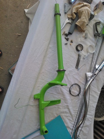 j'ai dû interrompre le remontage de la pomme car le filetage de la fourche était mort suite au décapage...