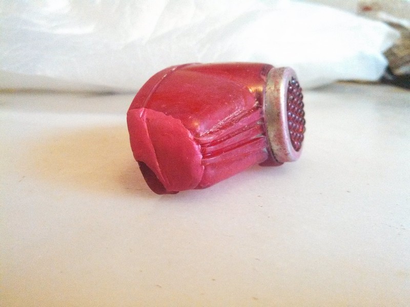 j'ai bouché le trou avec du patex 2 composants qui sert habituellement aux réparations diverses. je l'ai mélangé avec de l'encre récupéré d'un feutre rouge en enlevant l'espèce de feutre à l'intérieur. ça à l'air de tenir, on verra en usage réel. petite encoche pour le maintien du système et voilou ----------------